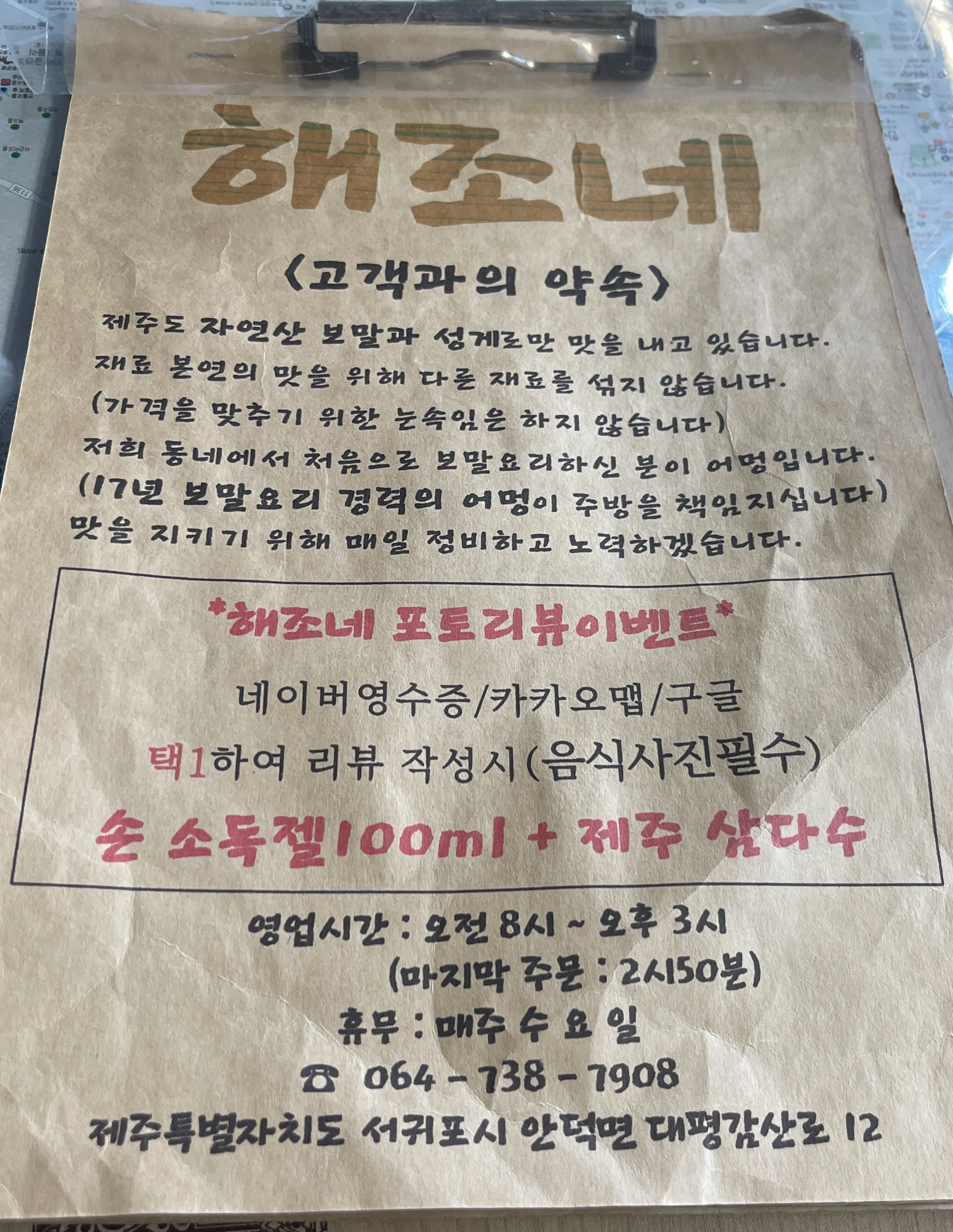(주소) 서귀포시 안덕면 대평감산로 12 1층, (영업시간) 08:00 ~ 15:00, 매주 수요일 휴무