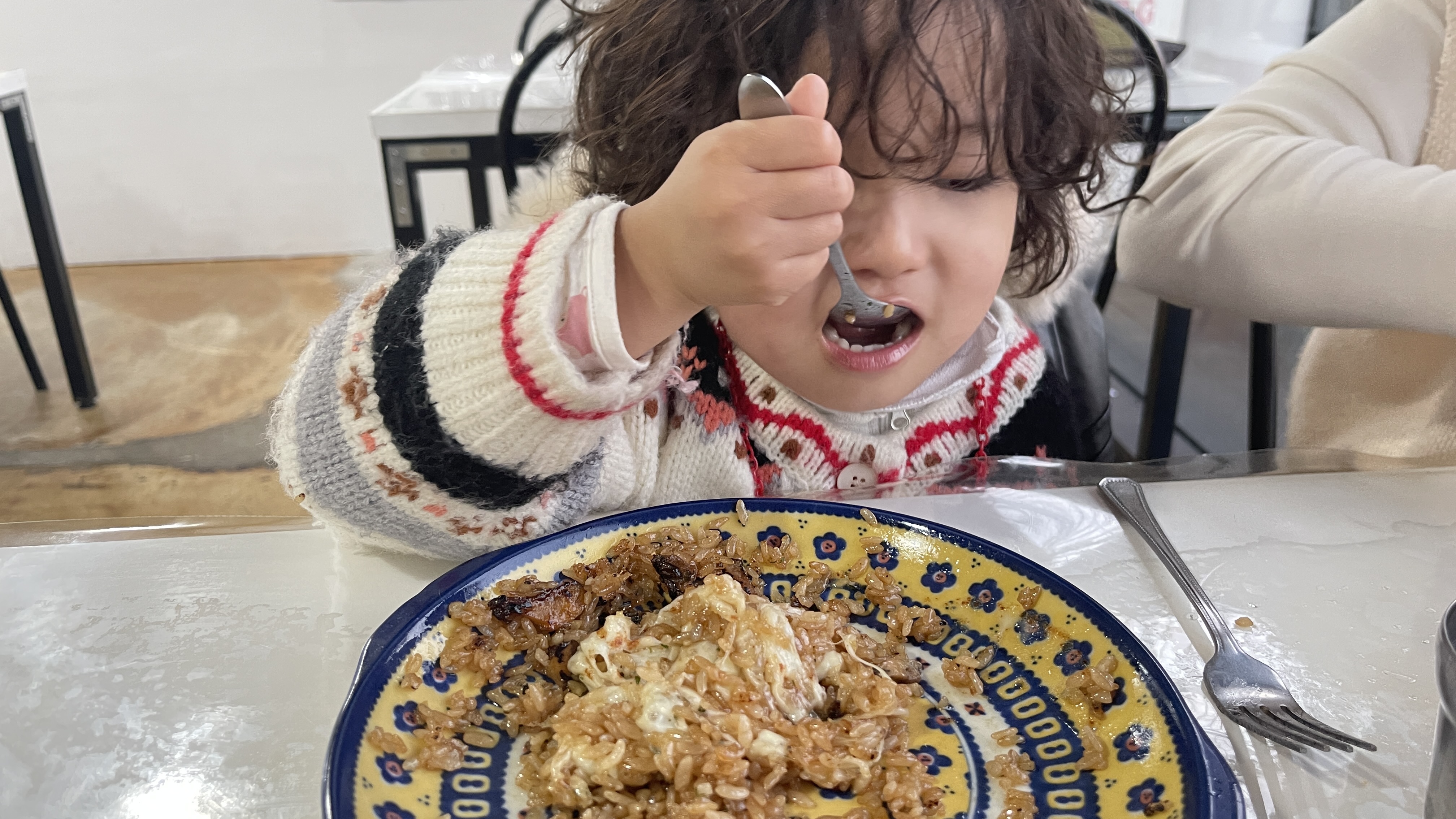 전복치즈밥은 라온이가 먹을 거라, 이렇게 한숟가락밖에 뜨지 못했지만.. 맛있다. 치즈밥.. 막연하게 느끼할 줄 알았는데, 전복과 어우러진 짭쪼름한 볶음밥과 치즈가 이렇게 잘 어울릴 수 있나 싶다. 짭쪼름함은 아이들도 먹을 수 있을 정도로 쎄지 않다.