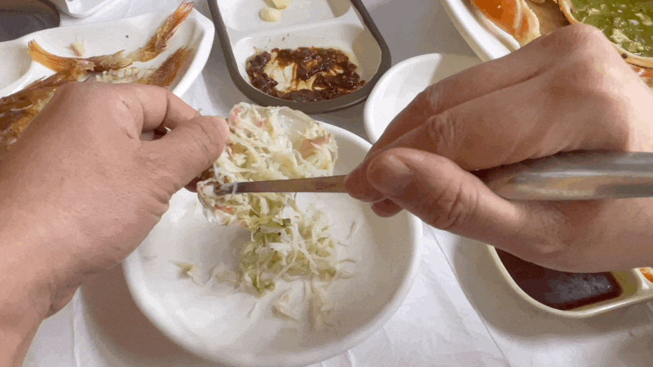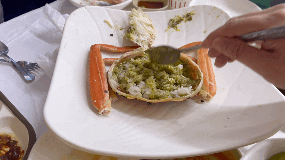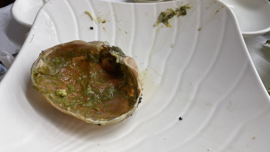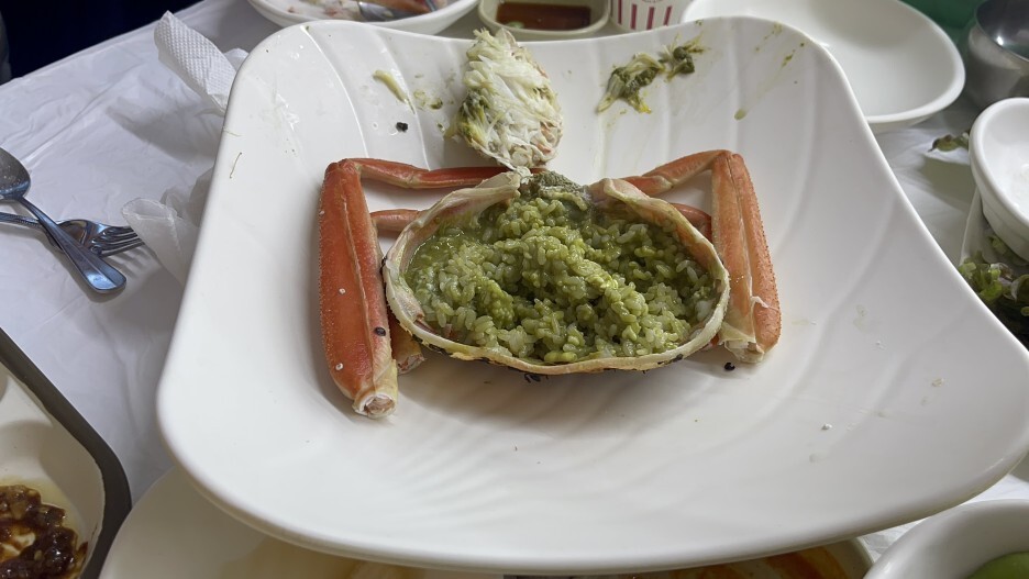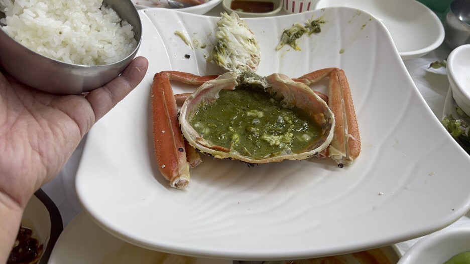 진실의 미간이 찌푸려지는 존맛탱 그 자체다. 밥양이 절대 적지 않았다. 딱 적당한 간과 고소함이 일품이었다. 오랜만에 대게딱지에 제대로 비벼진 밥이다. 반찬이 필요없을 정도로 맛있는!