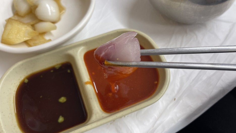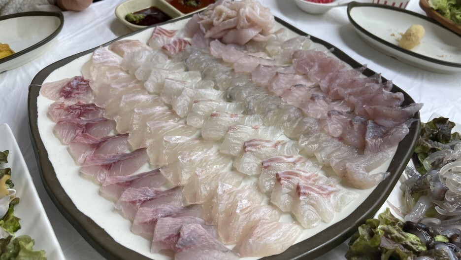 밀치회도 맛보고 광어도 맛보고 했지만, 복어회에 뒤지지 않을 정도로 쫀득쫀득하고 결이 살아있는 신선함이 입안을 맴돈다. 회 먹는 맛이 아주 제대로다!