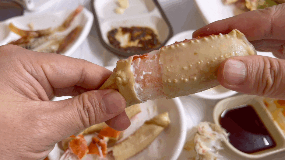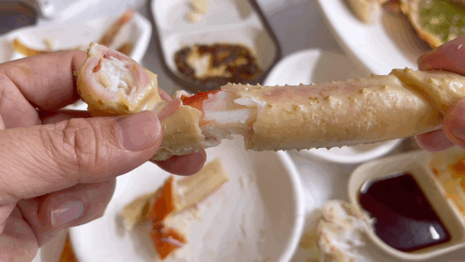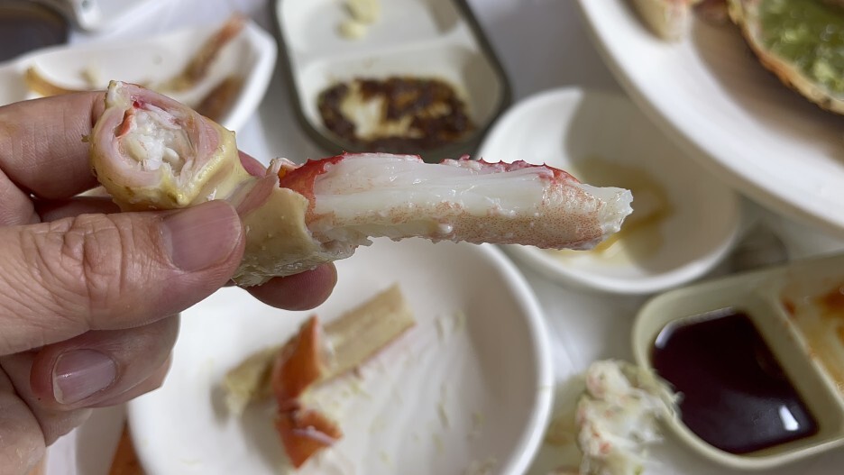 식사를 마치고 밖으로 나오니 다른 손님들이 킹크랩을 주문하고 있다. 그 모습이 신기해 영상으로 담아본다. 사실은 부러워서 찍어봤다. 대게로 만족이 안되는지 남의떡 킹크랩에 군침이 도는 라온아빠..