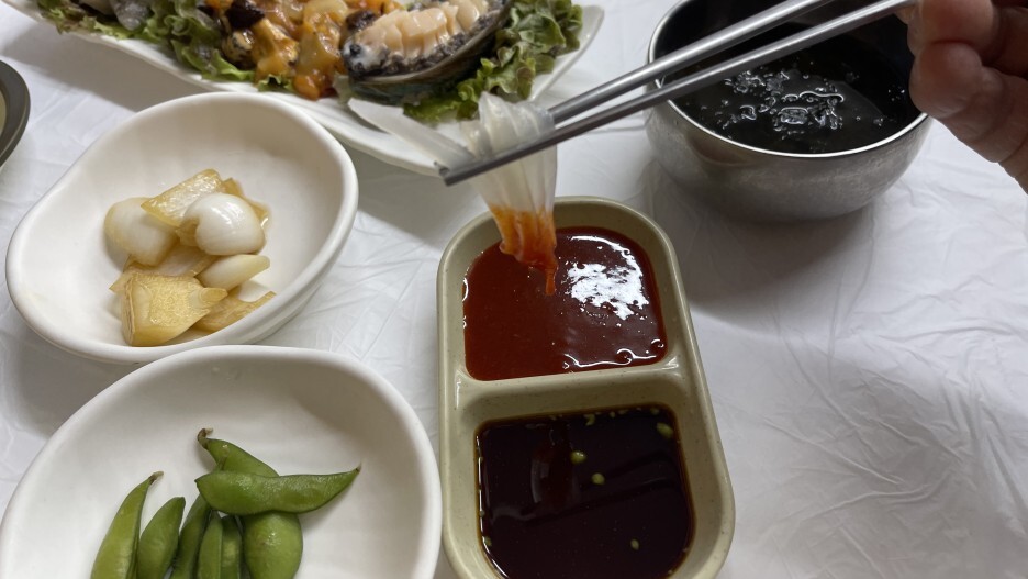 싱싱한 바다내음이 그대로 전해지는 멍게와 오독함이 살아있는 전복. 제주에서도 자주 먹어보지 못하는 값비싼 녀석을 주문진횟집에서 맘껏 먹어본다.