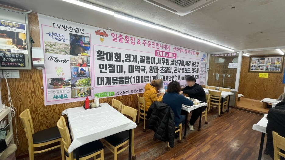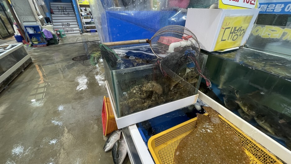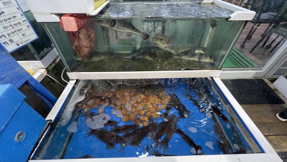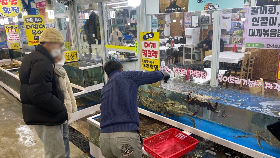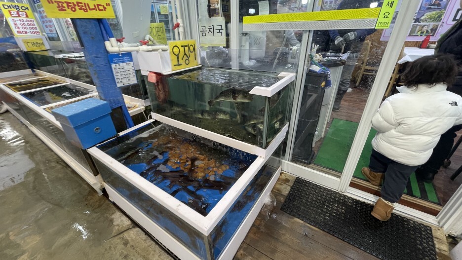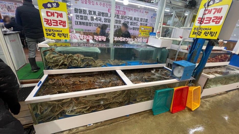 가게 앞 수족관에는 방금 잡아온거라고 얘기해도 믿을만큼 신선한 활어와 대게, 킹크랩이 손님맞을 준비가 되어 있다. 눈으로 확인하는 신선함, 가성비있는 가격대까지 확인하고서야 가게 내부로 들어가 본다.
