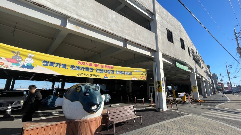 해안주차타워 맞은 편에 바로 주문진 수산시장이 보인다. 오늘의 목적지인 일출횟집은 바로 저곳에 있다.