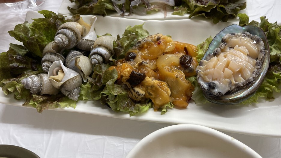 방금 잡아내온 멍게와 전복. 그리고 소라. 싱싱하지 않다면 비린내가 나기 마련인데, 그렇지 않다는 것은 이미 들어올때부터 보았던 싱싱함이 대변해준다.