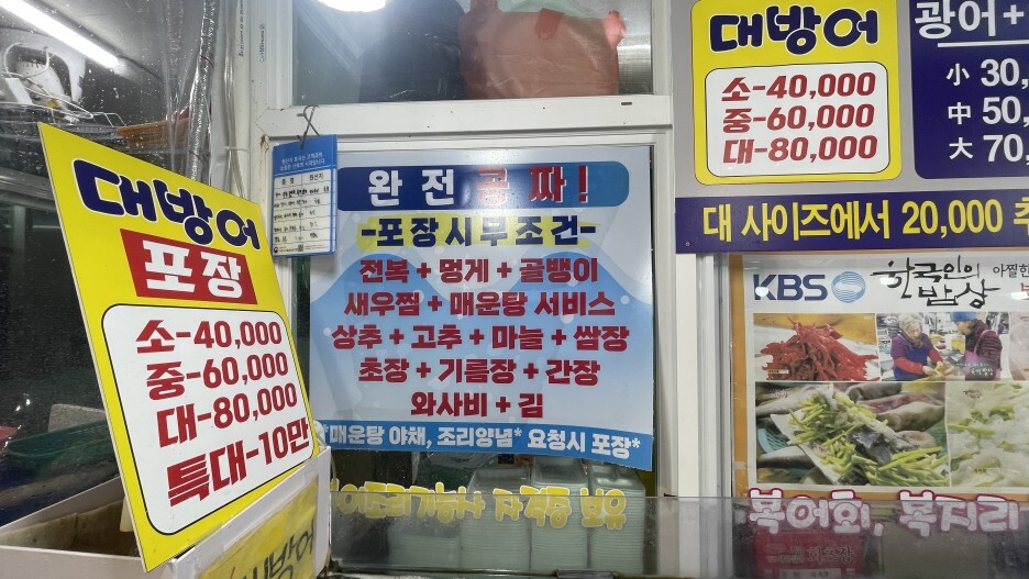 방어도 제주도보다 싸다. 제주도에서 마음껏 못먹는 방어를 주문진에서 마음껏 맛봐도 될 것 같다. 어떻게 산지보다도 저렴할 수 있는지..