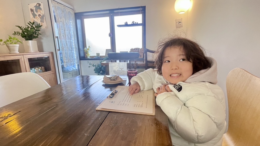 메뉴판을 받아들더니, 자기가 보겠다며 받아들고선 또 글자놀이에 빠졌다. 한글자한글자 또박또박 읽어가며... 그런데 우리 배고프니까 일단 좀 시켜보자!
