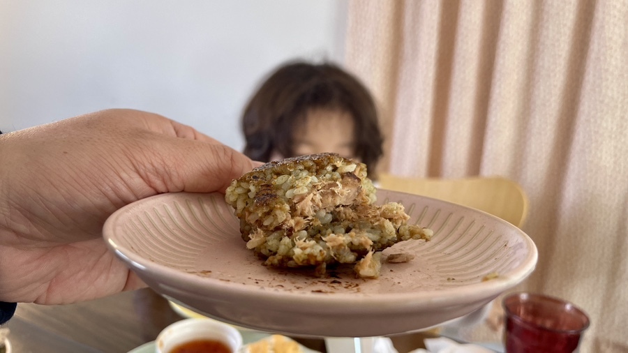 위에 올려진 가쓰오부시가 부담스러운 것 같아 전부 걷어내고 입만 대보라며 입에 갖다주었더니 살짝 맛을 보며 찡그린다. 그래서 내가 먹으려 가지고 오니..