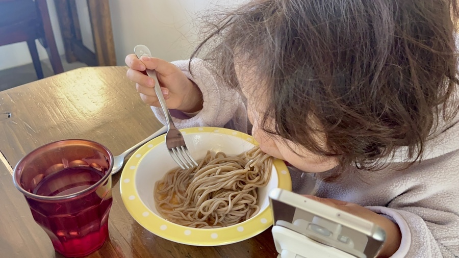 고명 사이로 숨어있는 소바면을 떠보았다. 라온이가 잘 먹을 수 있을 것 같다.