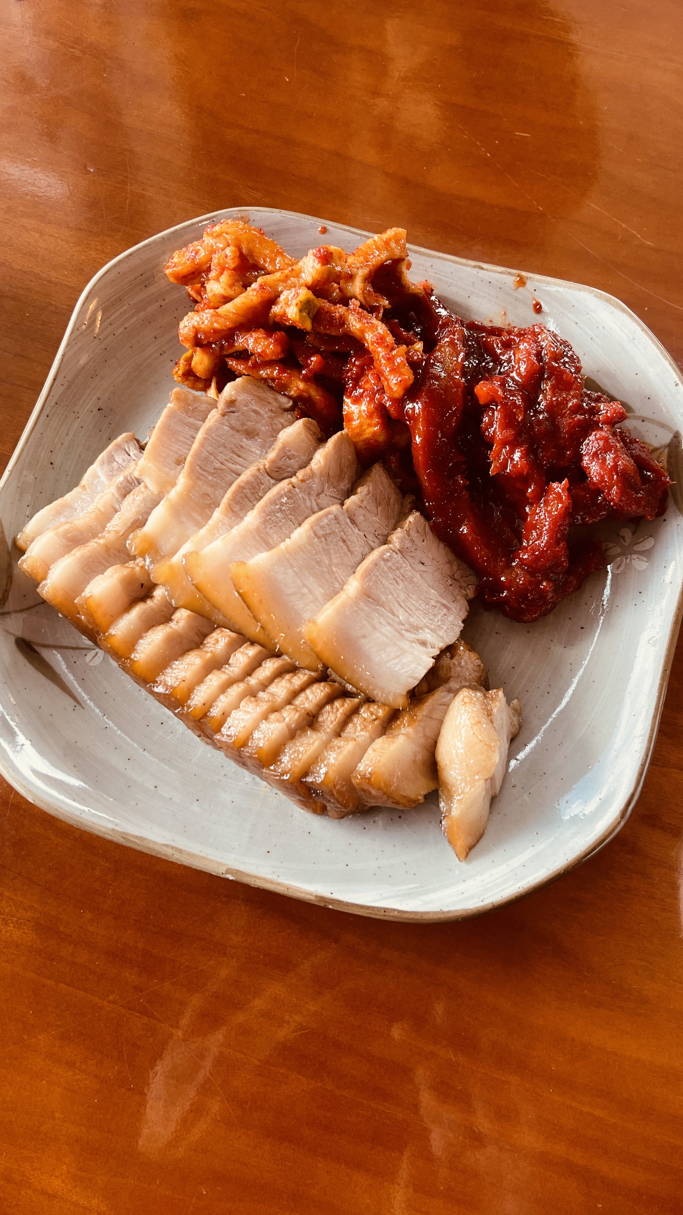 이 거리를 지날 때마다 지붕 위에 쓰여진 글씨가 신경쓰였던 곳인데, 어느날 지나다 방문해서 먹어보니, 아이와 가서 먹기에도 나쁘지 않을 메뉴와 맛이었다. 특히 명태회무침이 속초에서 먹어보았던 맛과 유사해서 나름 괜찮았으며, 수육도 아주 부드러워 회무침과 먹으면 꿀맛이다. 이집의 가장 큰 장점은 제주에서 보기드문 24시간 영업이라는 것. 단, 포장이 안되는건 단점이다.