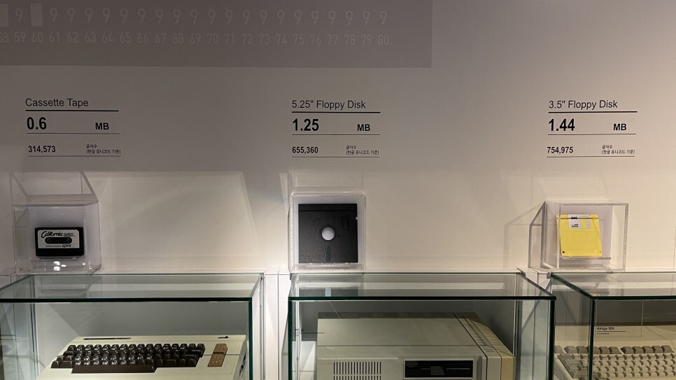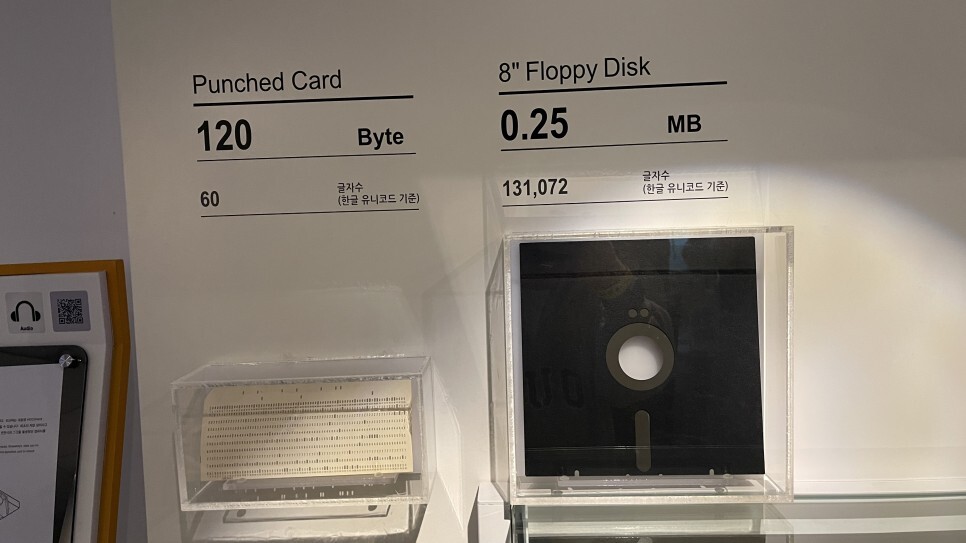 플로피디스크 이전의 천공카드부터 점점 소형화되던 플로피디스크 이후 CD, DVD, 블루레이. 그리고 USB메모리와 HDD의 등장까지.. 메모리의 변천사와 함께 나이들어가는 우리세대가 공감할 수 있는 부분이 참 많다. 추억 제대로 돋는 코너. 아이보다 어쩌면 어른들이 더 공감을 많이하게 되는 전시코너이다.