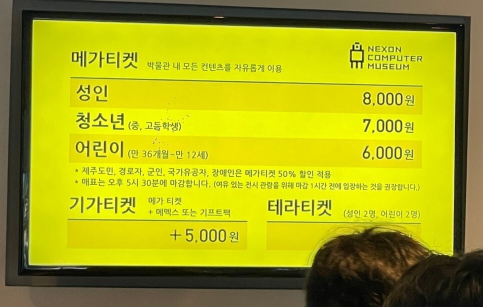넥슨컴퓨터박물관 이용요금