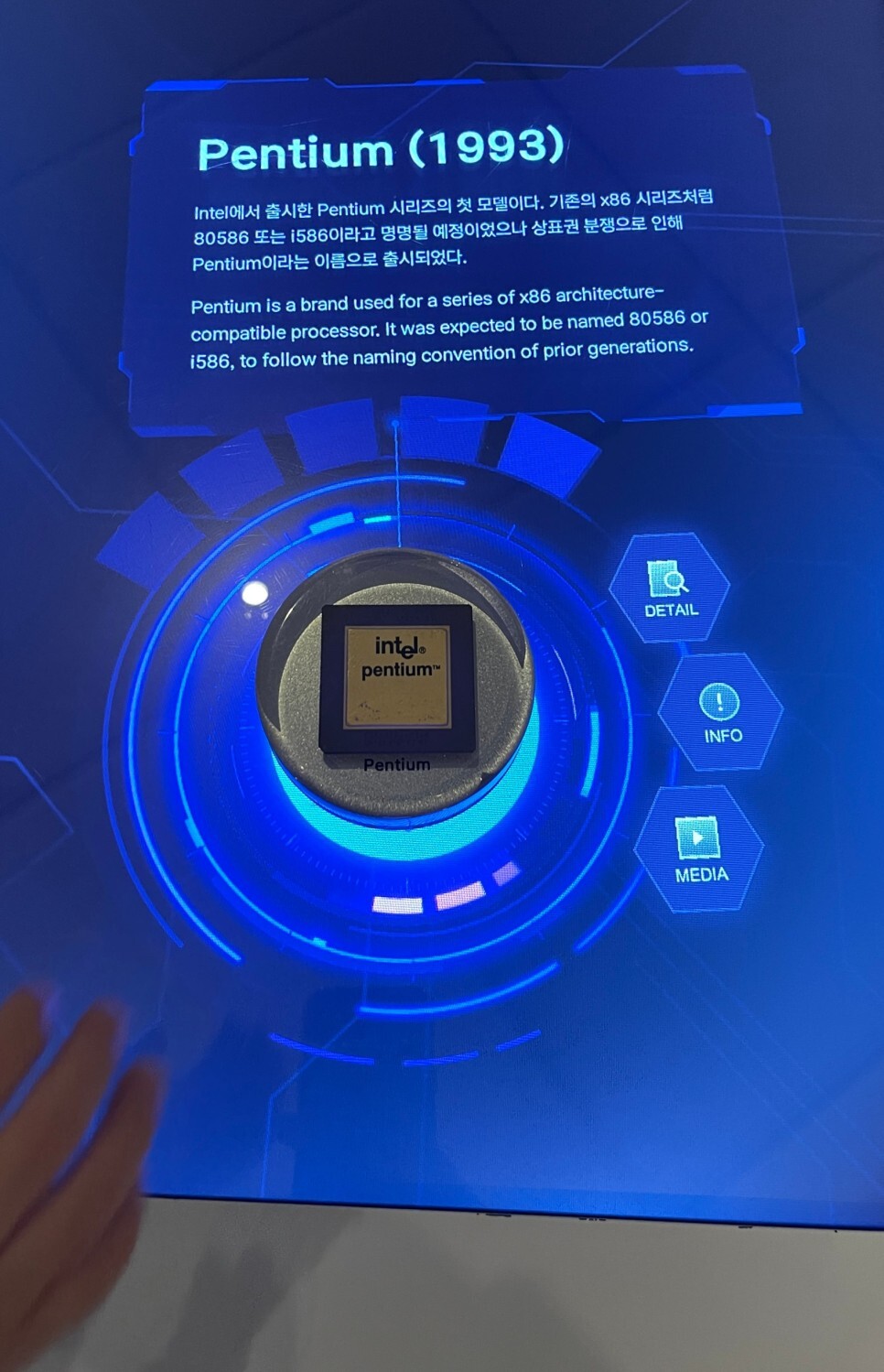 CPU의 발전되는 모습은 아주 신박한 체험과 함께 살펴볼 수 있다. 동그란 장치에 들어 있는 각종 CPU를 화면 위에 올려두면 상세한 정보가 신박하게 화면위로 노출이 된다. 두개까지는 보이고, 세개이상은 화면 노출이 안된다.