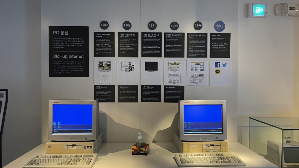 한시대를 풍미했던 천리안, 나우누리, 유니텔 등의 PC통신 시절의 유물도 만나볼 수 있다. 내 스무살 시절, 모뎀접속하는 띠리리리리리.. 소리와 함께 인터넷 세상으로 들어갈 수 있던 그때와 비교하면 지금의 인터넷 속도는 엄청난 발전이긴 하다. 옛추억을 소환하며 아빠는 감상에 젖어 있고, 라온이는 자판 두드리기에 재미들리게 된 곳.