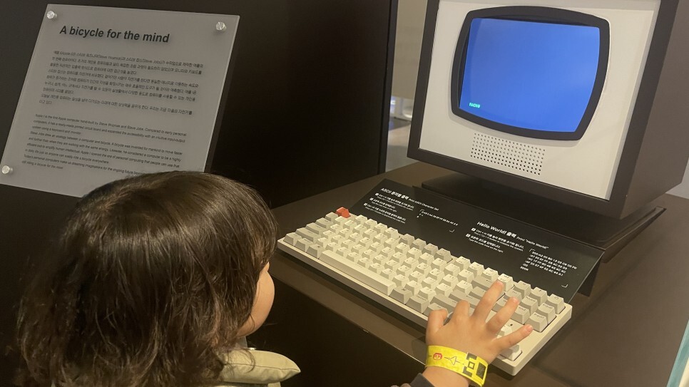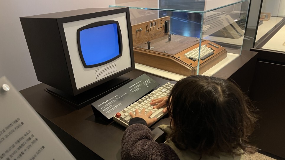 지금아이들은 아이패드나 아이폰에 익숙하겠지만, 애플에서 최초로 만든 컴퓨터가 이런 모양이라면 어떤 표정을 지을까? 지금과 비교하면 조잡할 수 밖에 없지만, 당시만 해도 아주 최첨단 기기였을터. 그러거나 말거나 라온이는 타자치기에 열심이다. 다른 지역에도 이런 테마파크가 있는지 모르겠으나, 제주여행에서 아이와 이런 경험을 해볼 수 있는 곳은 여기가 유일하지 않을까?