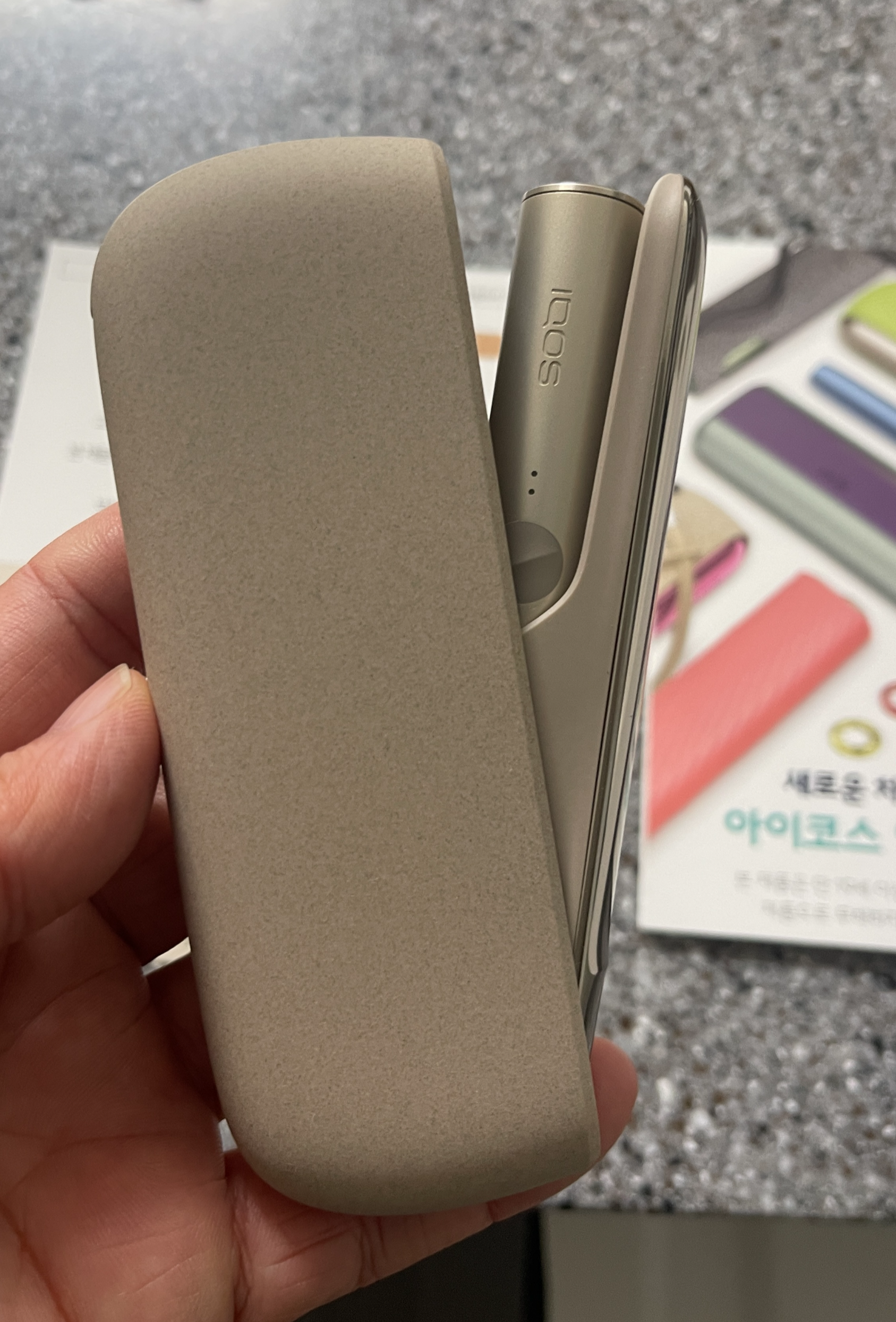 아이코스일루마 케이스를 벗겨보니 그 안에 또 케이스가 있다. 포장을 참 겹겹이도 해놓았다. 페블베이지 색상으로 선택했는데, 나름 나쁘지 않다.