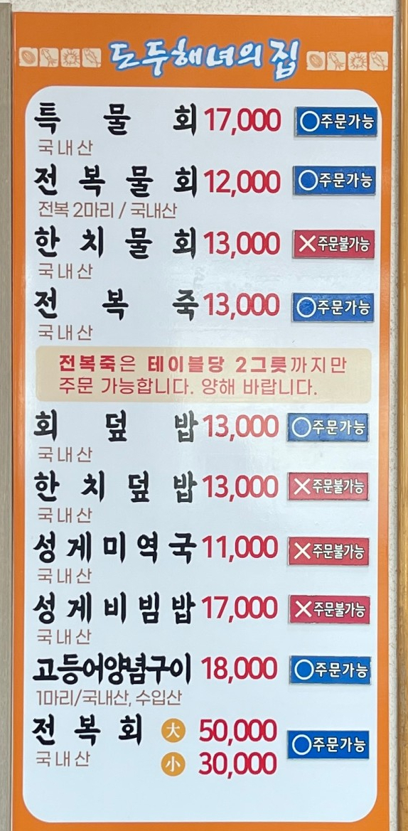 제주공항근처 도두동 물회맛집, 도두해녀의집에서 싱싱한 전복물회 한사발 드링킹