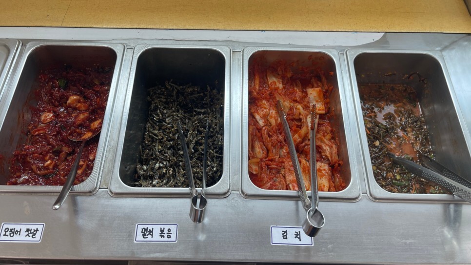 물회 자체가 반찬의 역할을 톡톡히 할테지만, 4종류의 반찬이 별도로 식탁위에 올려진다. 잔반을 없애기 위해 아주 소량만 담겨져 오는데, 부족하면 셀프반찬대를 이용하면 된다. 바삭한멸치볶음과 제주산톳무침, 그리고 잘익은 배추김치와 더불어 군계일학 오징어젓갈까지. 오징어젓갈은 따끈한 밥위에 그냥 올려먹어도 좋을만큼 매콤함이 좋다. 마치 후추가루 팍팍 때려넣은 듯한 그 매콤함이 개인적으로 아주 좋아하는 맛이다. 이미 반찬만으로도 도두동맛집이다.