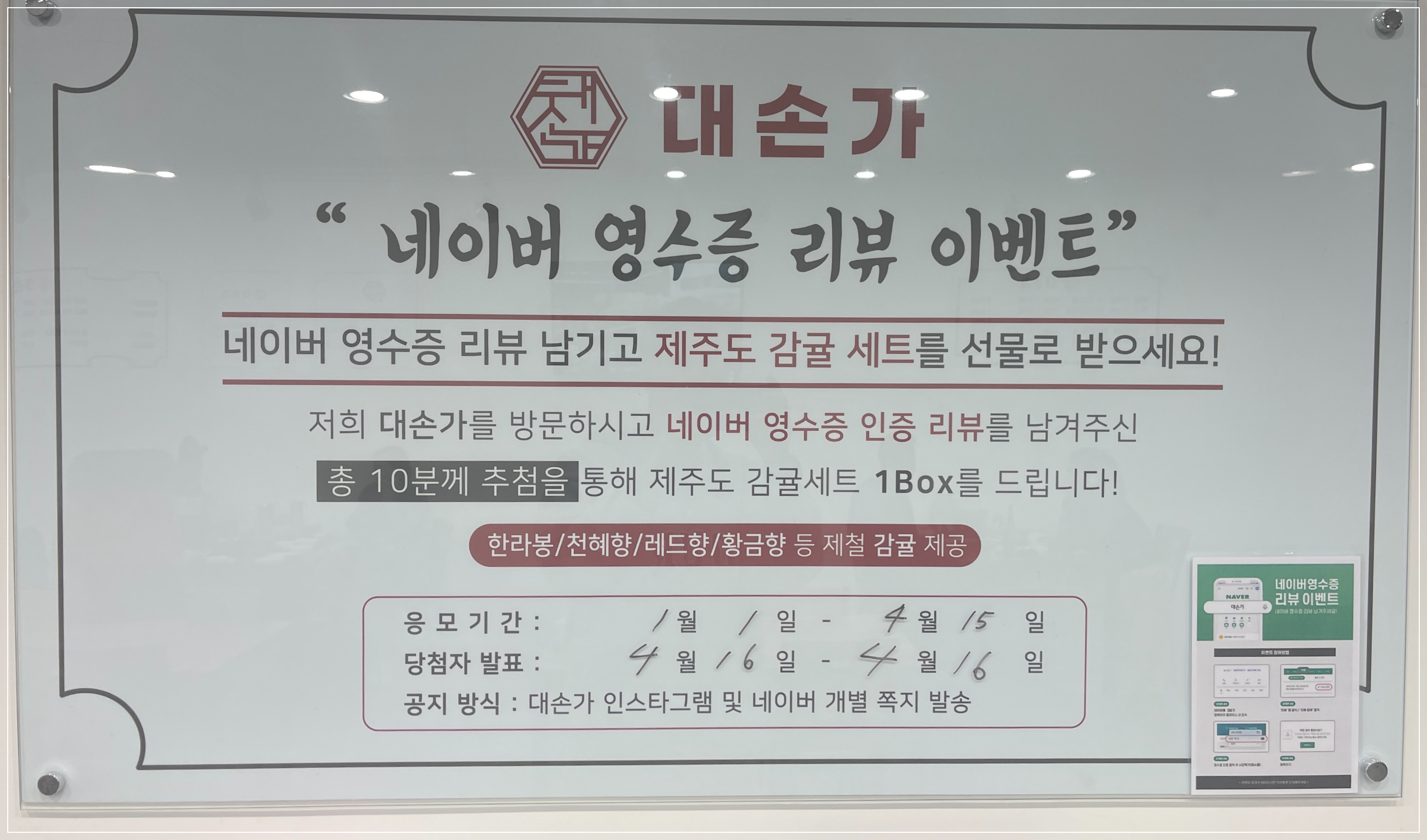 영수증리뷰 이벤트가 진행중이다. 추첨을 통해 제주감귤세트 1박스를 준다고 하는데.. 무조건 도전!