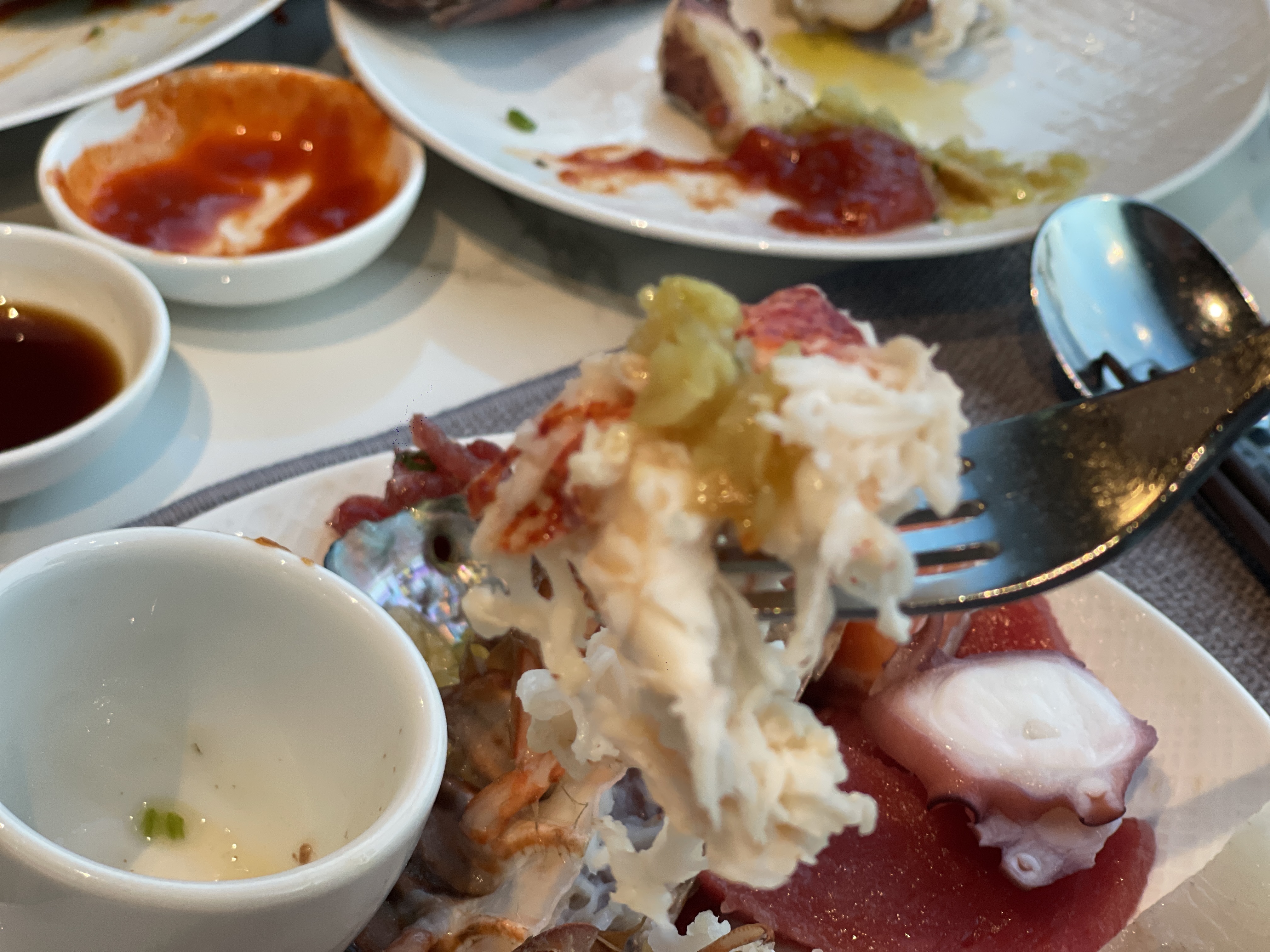 문어, 전복 모두 부드러운 식감이라 질긴식감을 싫어하는 사람도 부담없이 먹을 수 있고, 랍스터도 폭신한 살이 가득한데, 대게역시 먹기 좋게 절단되어 있어 먹는 재미가 쏠쏠하다.