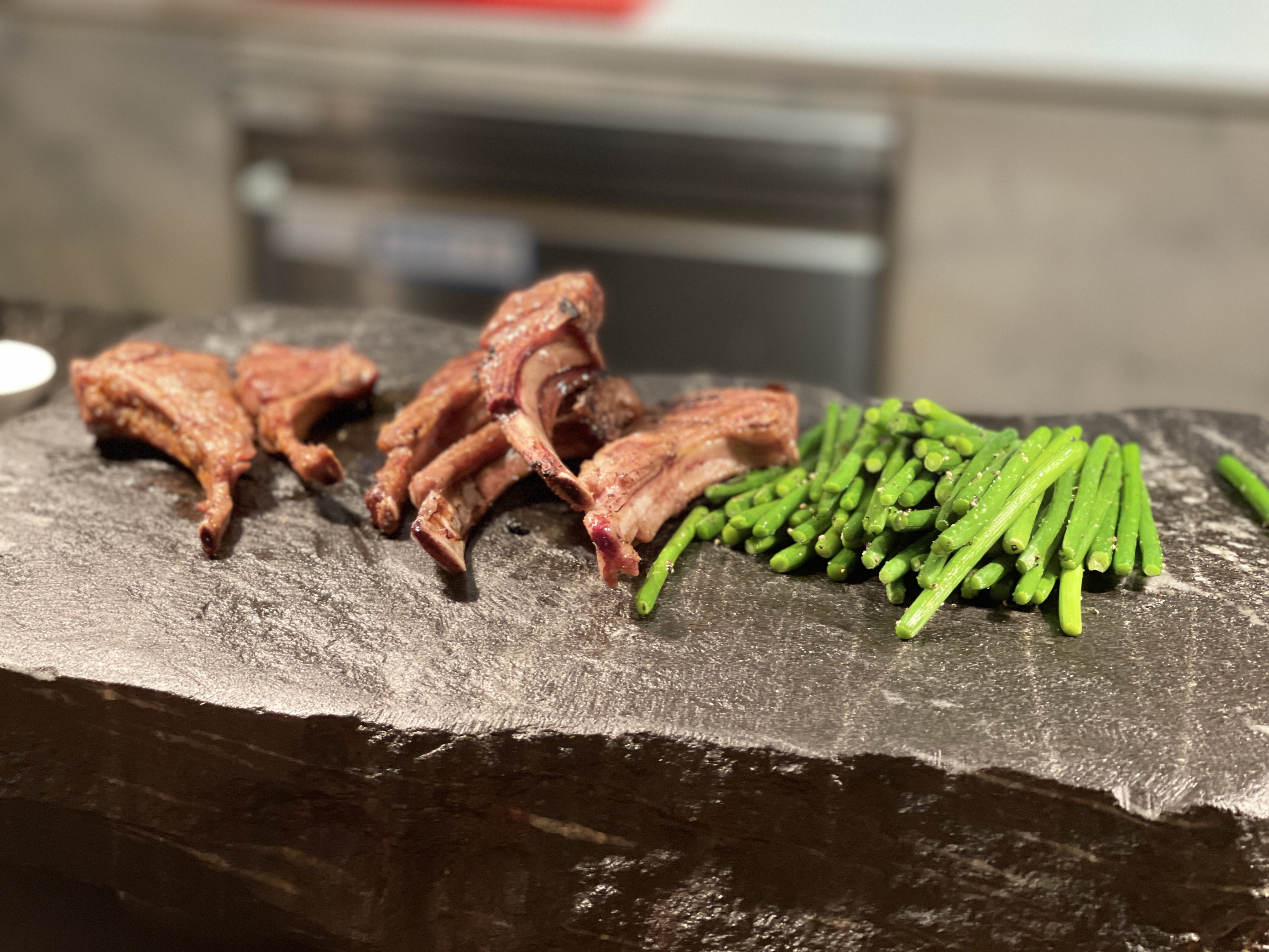 튀김과 그릴요리도 가져와 양갈비부터 뜯어보았더니, 아주 부드럽다. 이빨자국이 선명할 정도로 부드럽게 뜯기니 먹기좋다.