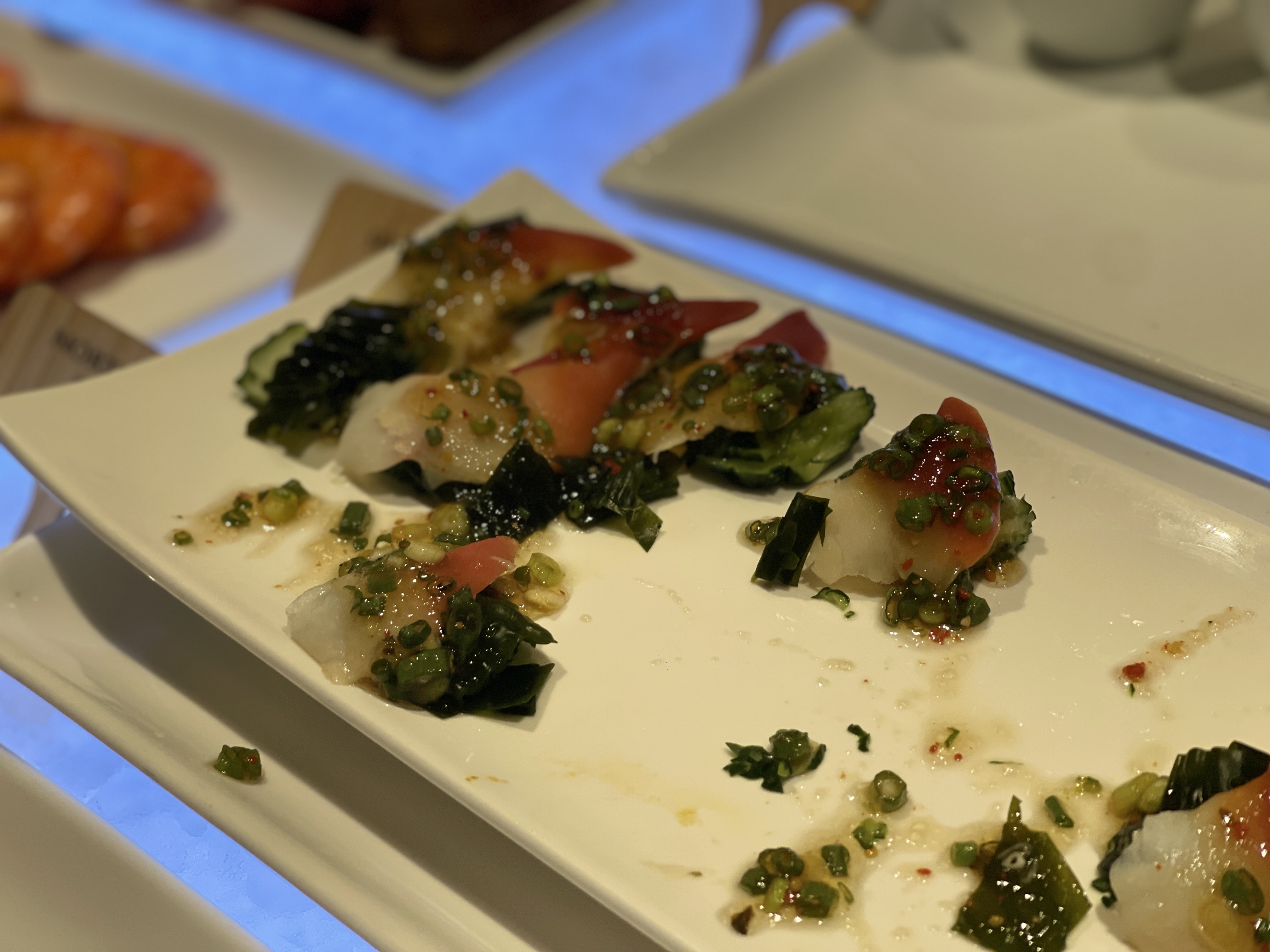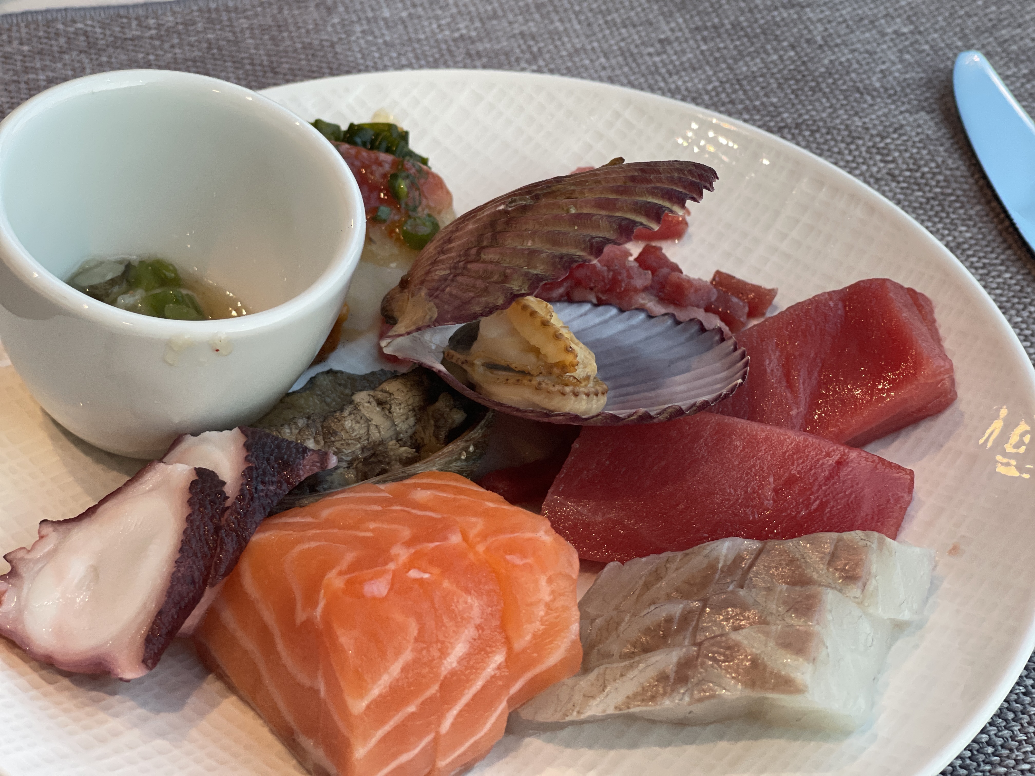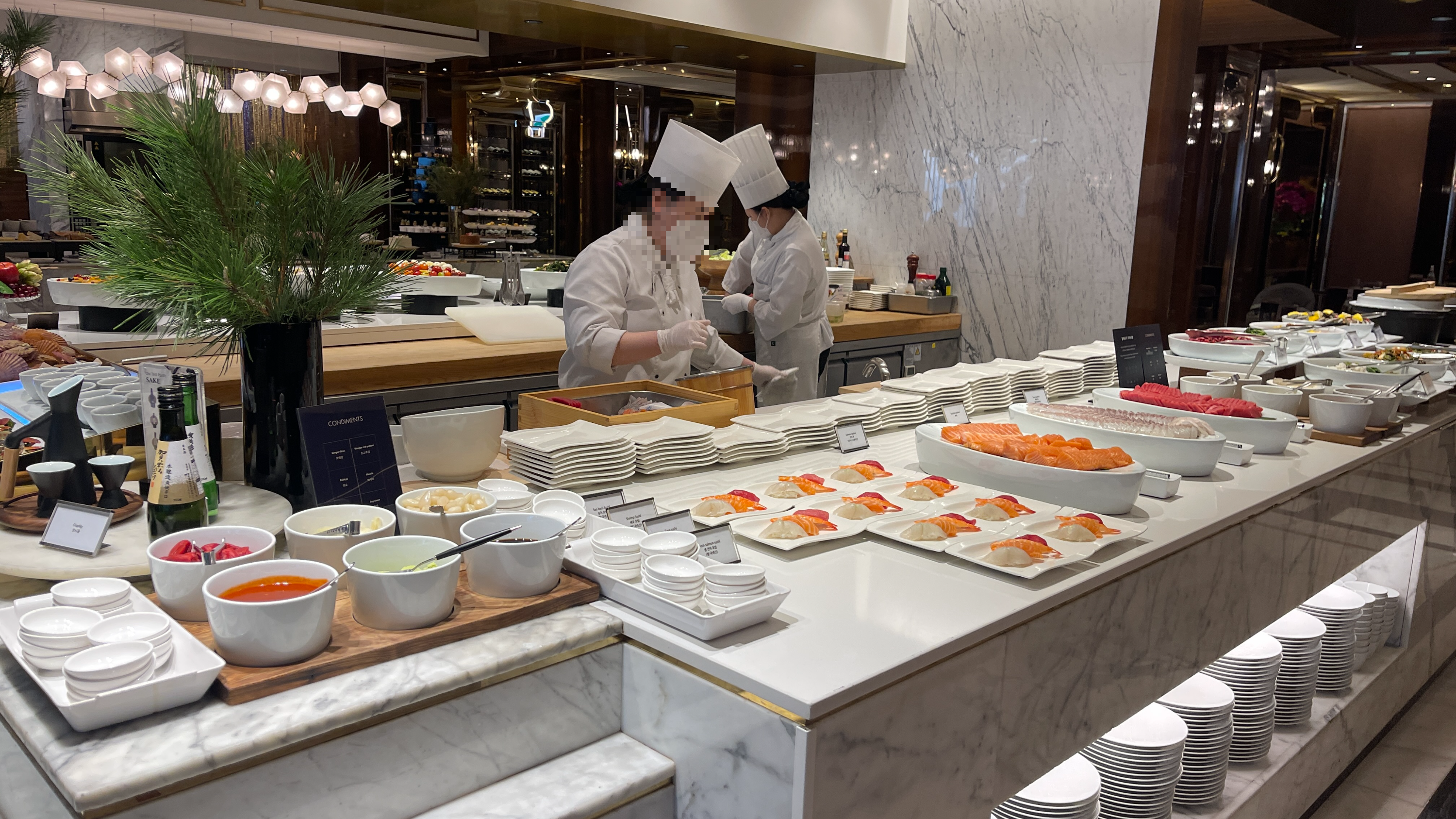 뷔페공략을 위해 초반엔 샐러드부터 먹어야 많이 먹을 수 있다는 글들도 있지만, 개인적으로는 해산물 즉, 회부터 공략하는 것을 정말 좋아한다. 언제부턴가 항상 회가 첫번째 메인요리였다. 배가 부른 뒤에 먹게되면 아무리 신선한 회라도 어느순간부터 바다내음으로 인해 먹기 부담스러워진다. 배가 부르기 전에 뱃속에 든든하게 넣어두어야 하기에, 회부터 시작해서 값비싼 랍스터까지 먹어치운다.