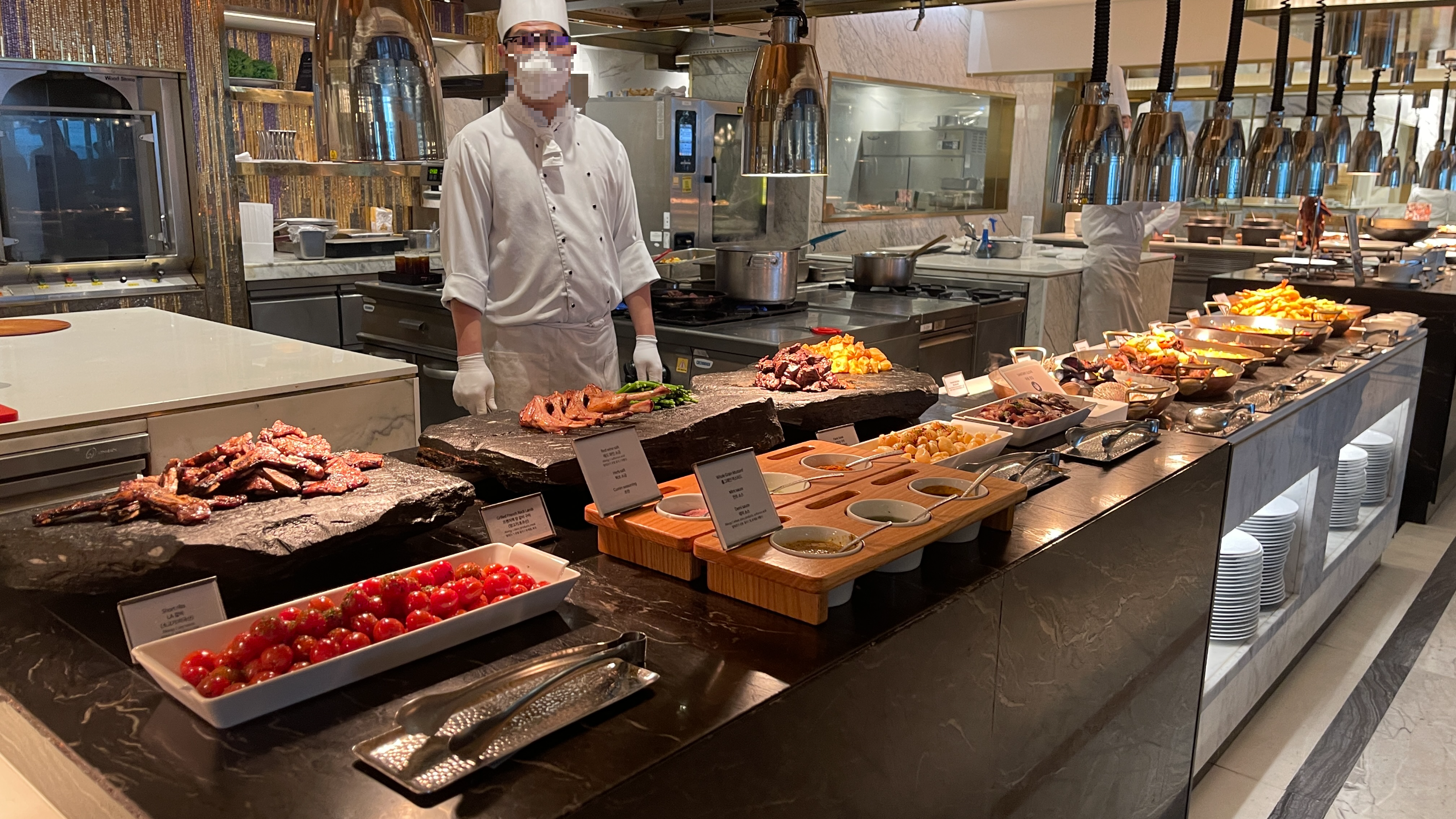 고급진 호텔뷔페에서 랍스터가 빠지면 서운한 법. 무조건 비싼 것부터 골라잡아 배채워야 안심이 된다. 그릴요리들 전부 맛나니까 무조건 골라담아 먹어줘야 한다.