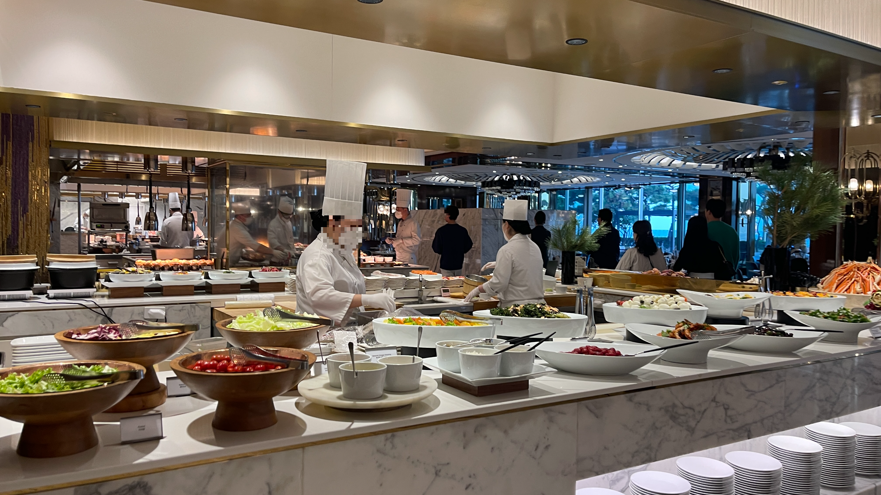 숙소때문에 약간 꿀꿀해 있던 기분은.. 파라다이스부산호텔의 온더플레이트 뷔페에 입성하면서 싸그리 전환되었다. 아주 오랜만에 방문하게된 호텔뷔페, 그것도 부산해운대에서 좀 유명하다는 호텔뷔페라 더 기분이 업되었다.