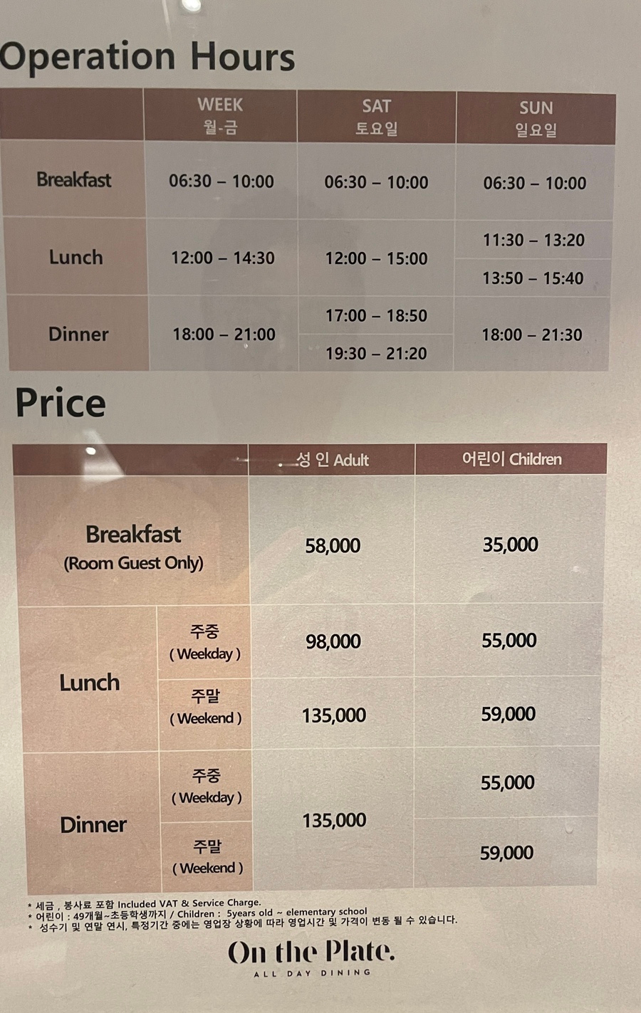 온더플레이트 주말 디너뷔페 가격