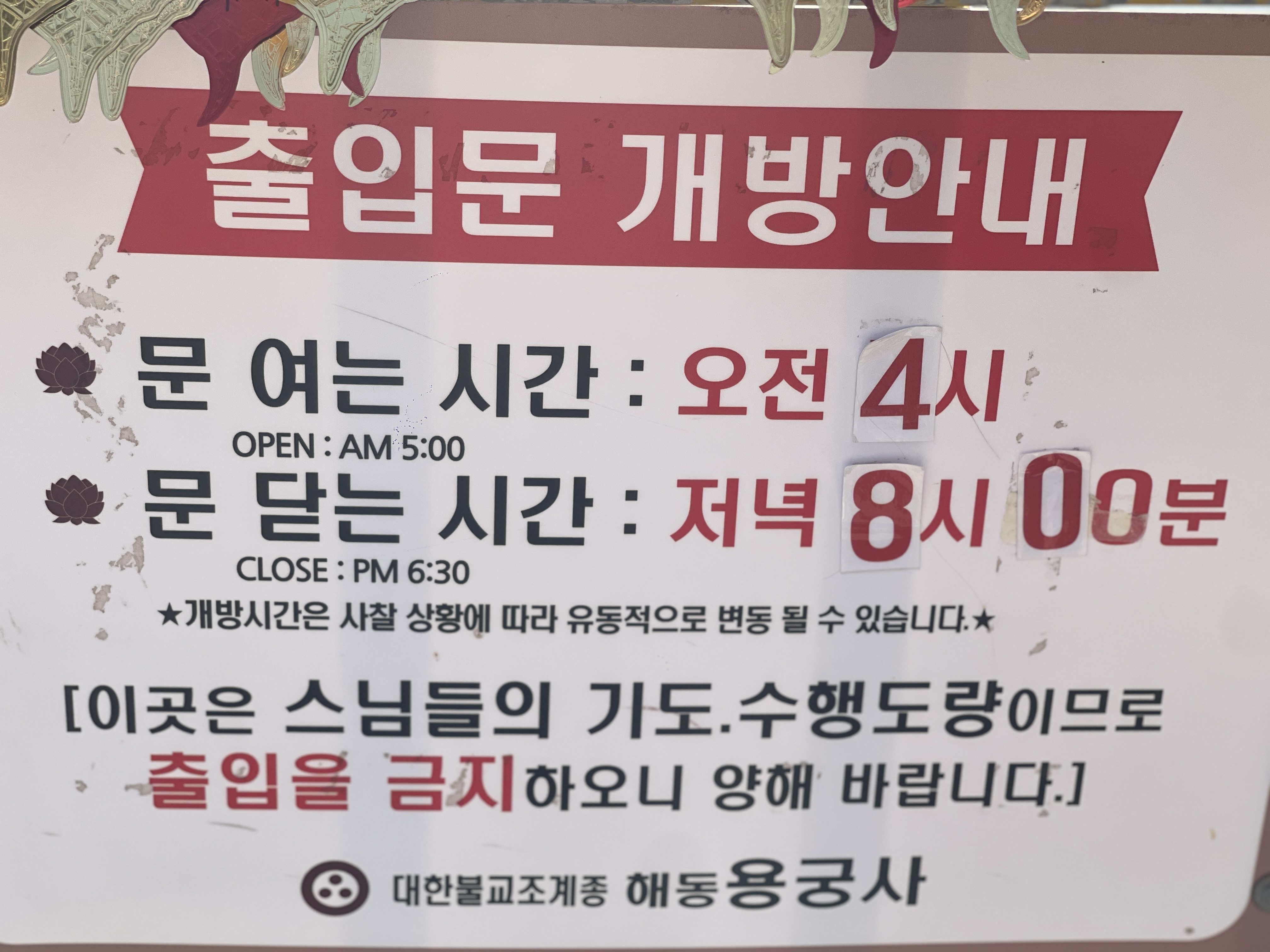 예나 지금이나 해동용궁사 앞엔 주차장이 있어서 편하다. 유료이긴 하지만, 없는 것보다는 낫다. 해동용궁사는 무료입장이며, 본 주차장과 사찰은 전혀 무관하다고 한다.