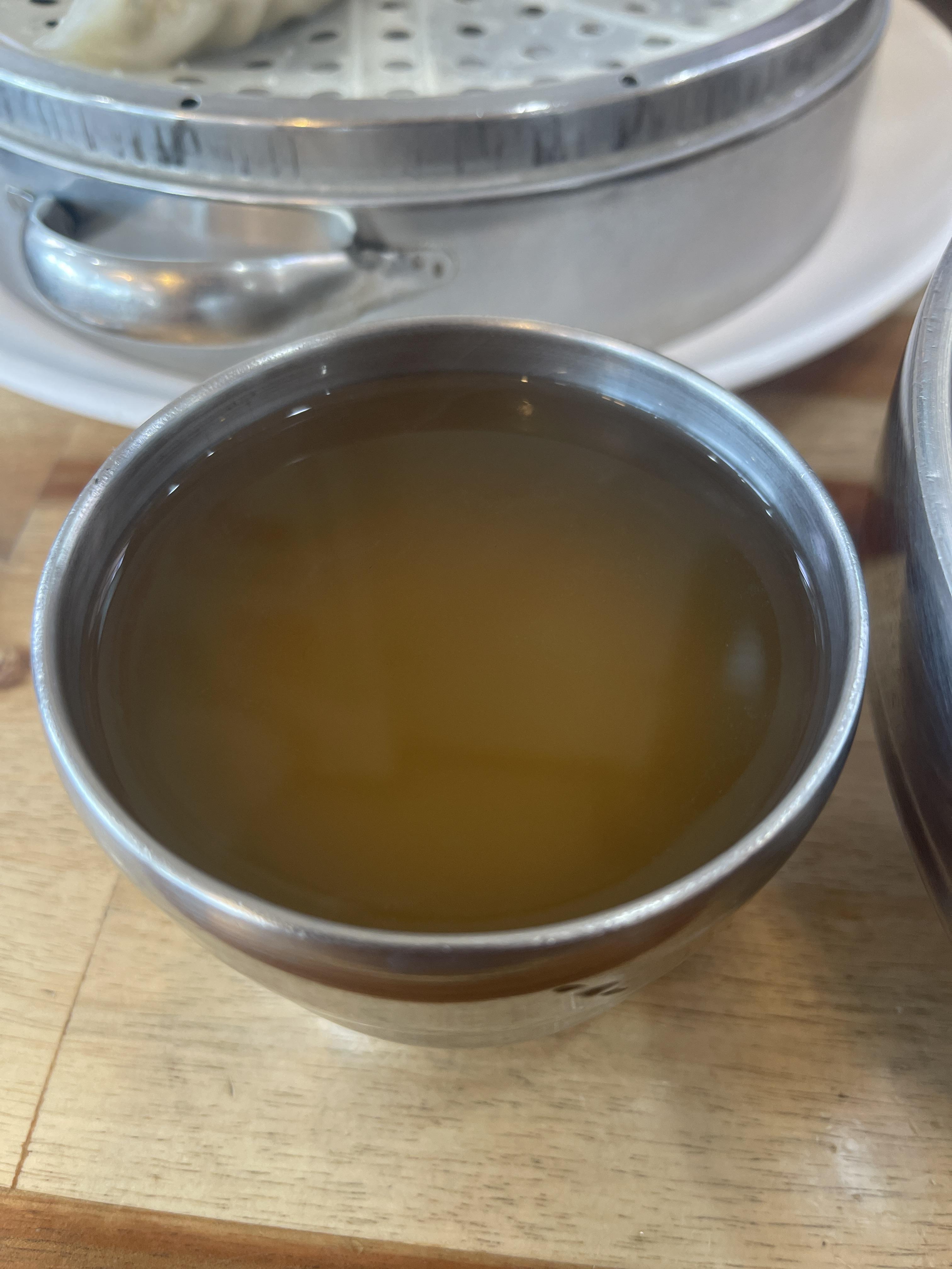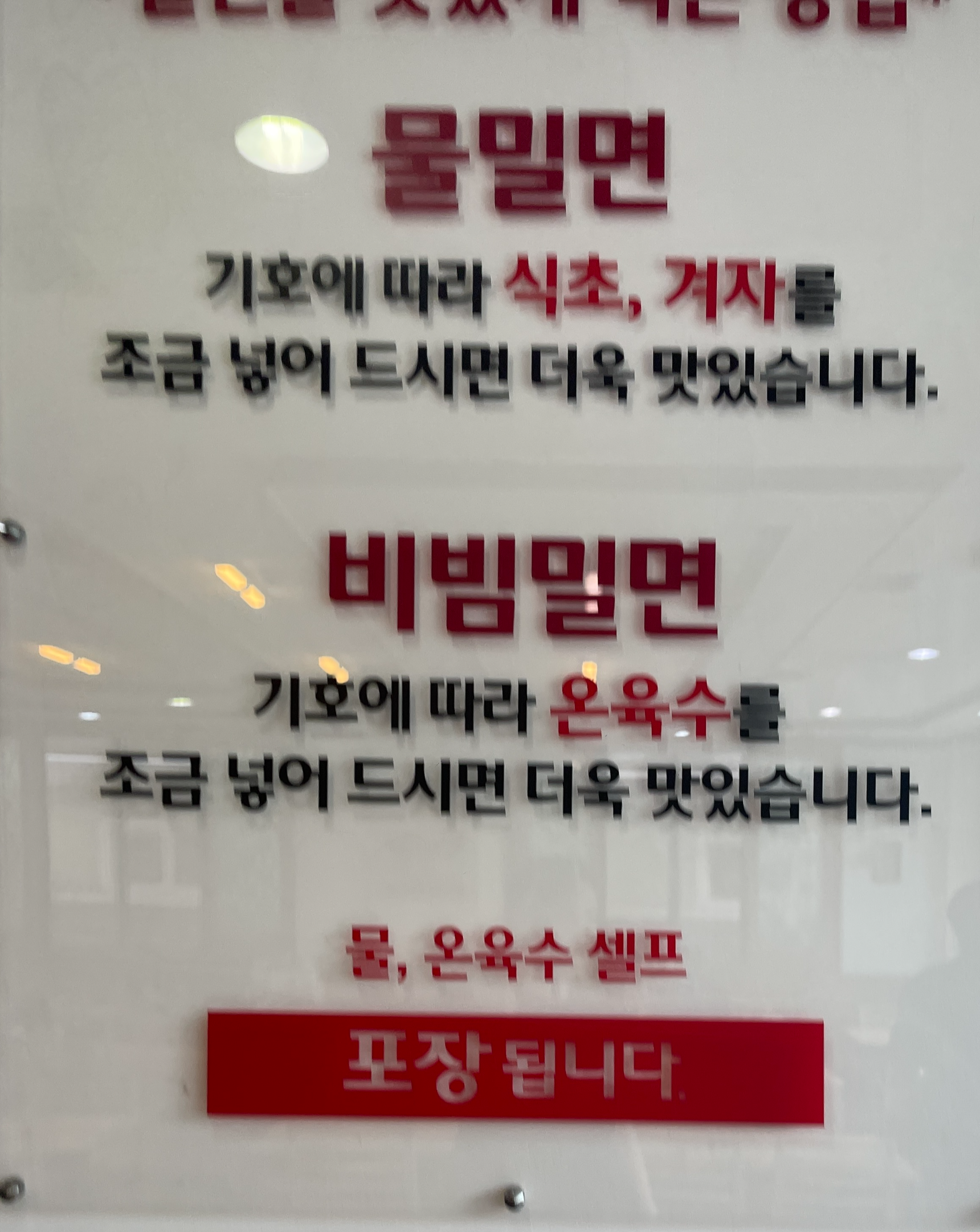 물밀면 육수와 대동소이한 온육수. 12시간 푹 끓여 만든거라고 하니 남기지 말고 먹어줘야지! 아주 뜨거우므로 반드시 쟁반에 담아가야 한다고 한다. 비빔밀면 한입먹고 매콤해진 입안을 온육수 한모금으로 입가심하면 완전 굿!