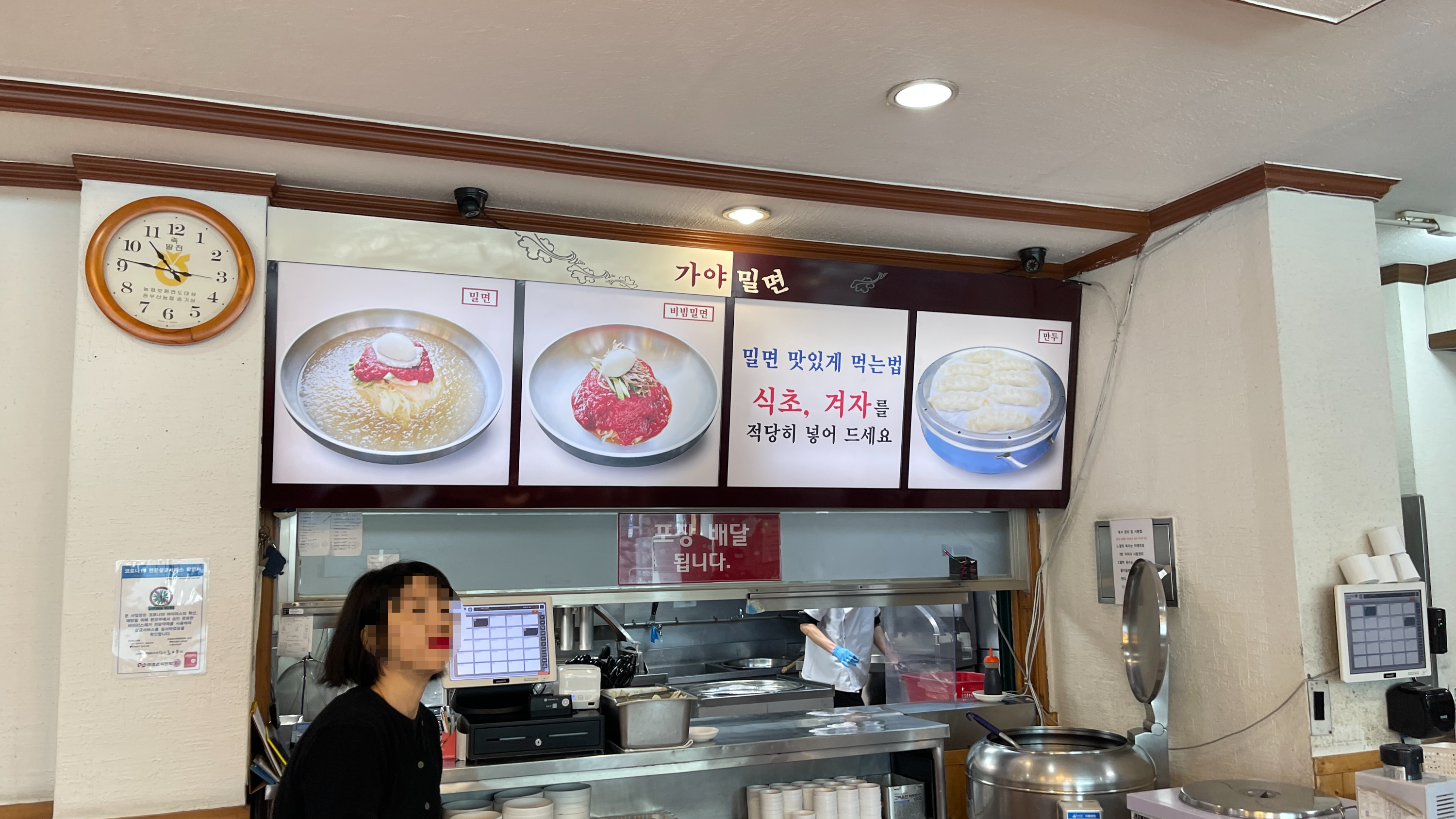 오픈한 지 얼마 안된 시간임에도 사람이 많다? 맛집이라서 그런가 싶었는데, 해운대가야밀면 사업을 해보려는 예비가맹점주들을 모아놓고 한참 설명회 중인가보다. 그래도 부산밀면맛집으로 소문이 나서인지 이걸로 새로운 인생을 꿈꾸는 사람들인 모양이다.