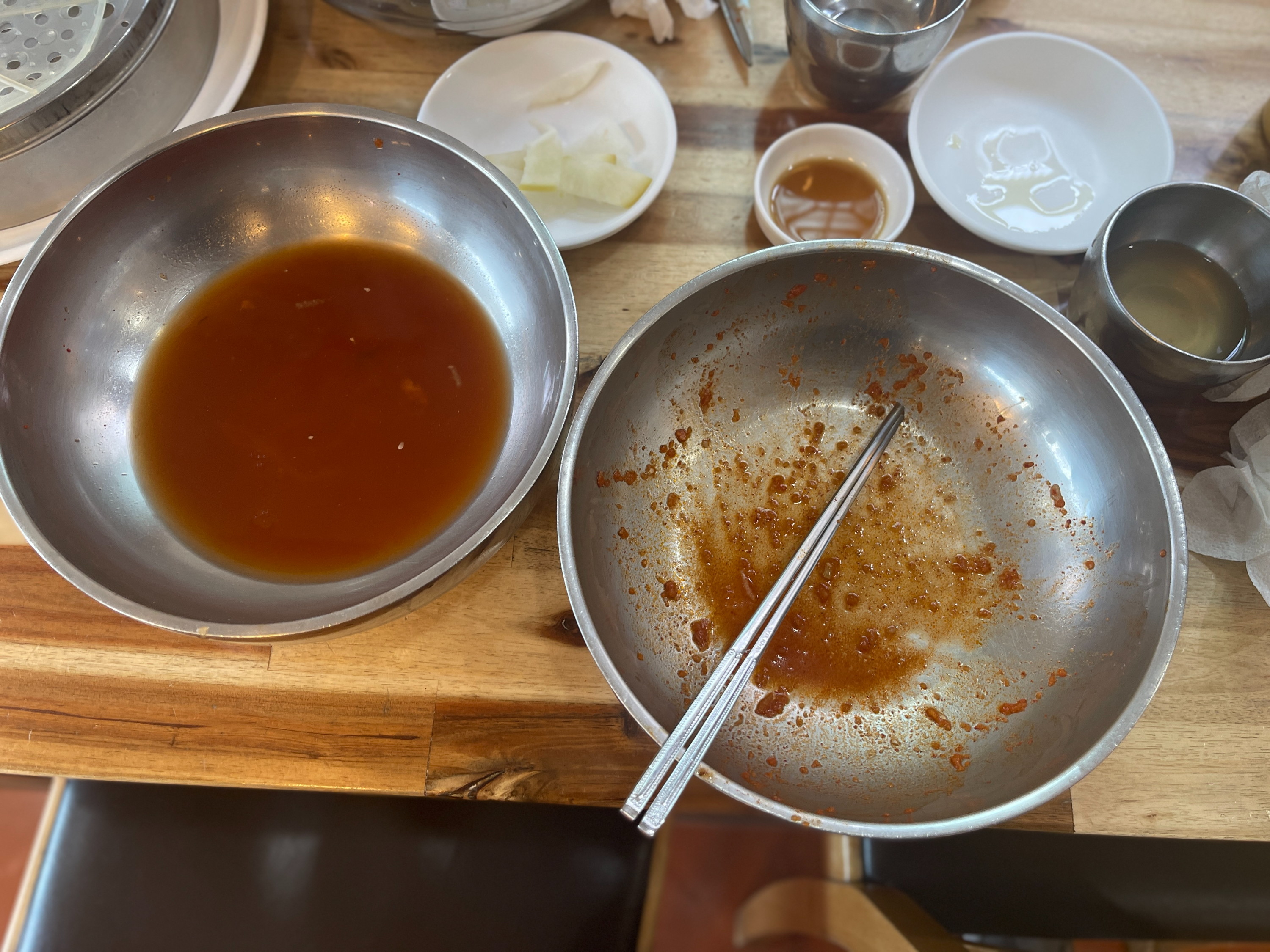 진실의 빈그릇되기 2분전의 모습. 아직 두알의 만두가 남았기에 전부 먹어치우고, 밀면육수와 온육수를 전부 해치운 후에야 식사가 마무리 되었다. 부산밀면맛집 해운대가야밀면! 부산여행이라면 무조건 방문각!