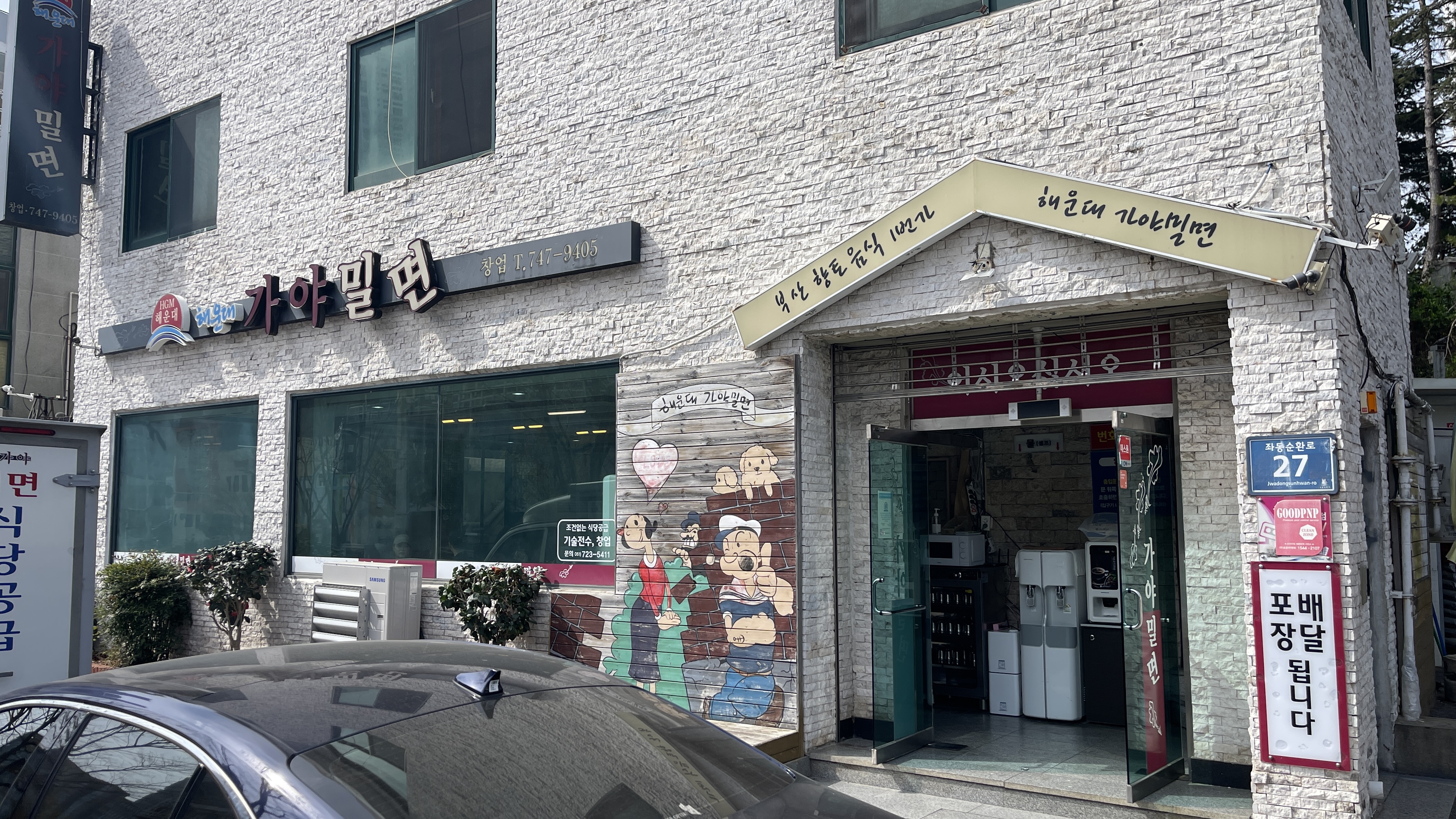 해운대에 머무르거나 부산고모네집에 들렸다가 돌아갈 때면 항상 들렸던 해운대가야밀면. 부산밀면맛집이라는 춘하추동, 가야밀면 등을 다녀봤지만, 해운대에서 가깝기도 하고 주차하기도 편한 한적한 동네라서 언제부턴가 줄곧 이리로만 다녔던 것 같다. 물론 맛이 좋으니까 가는건 당연지사.