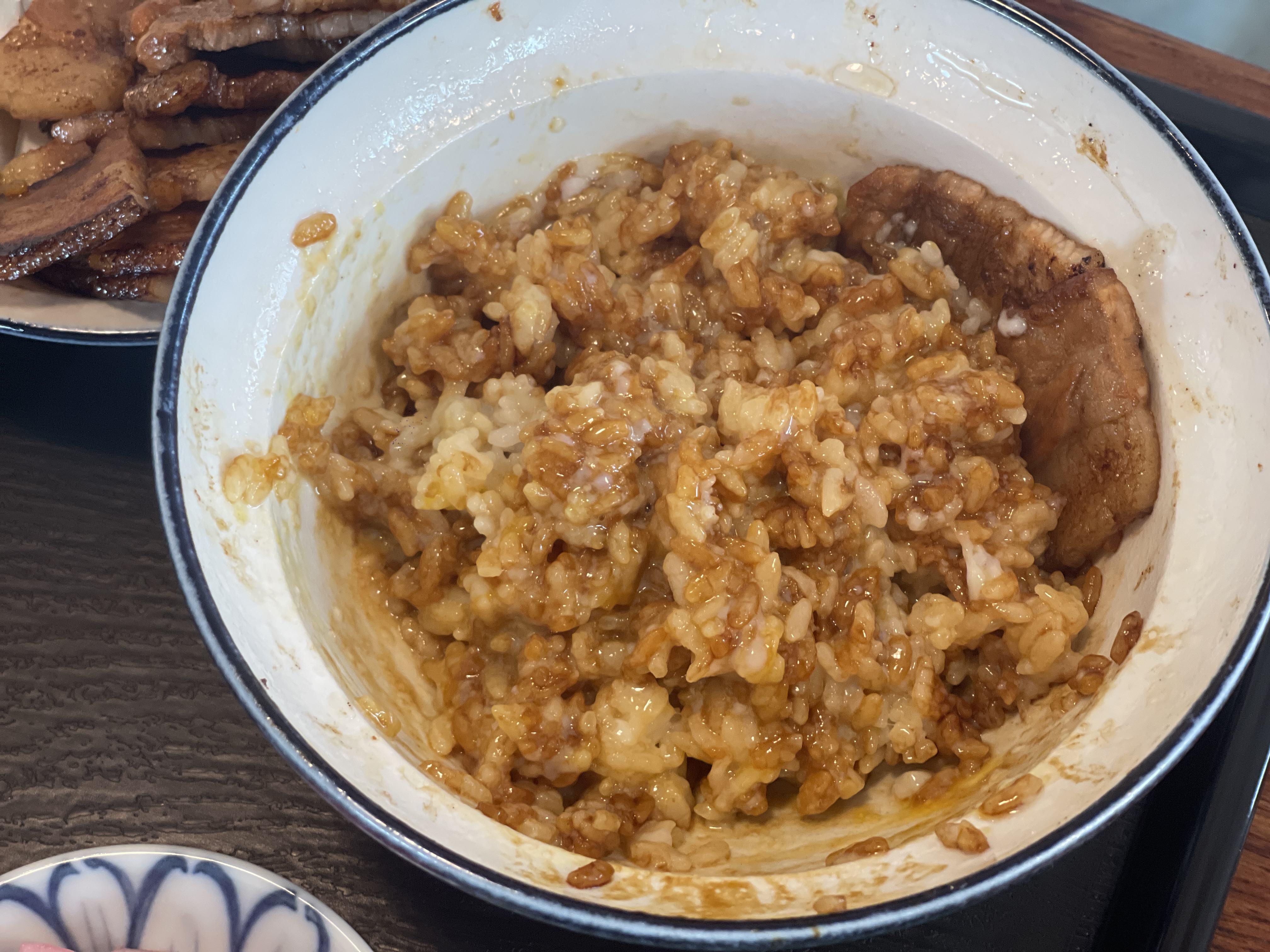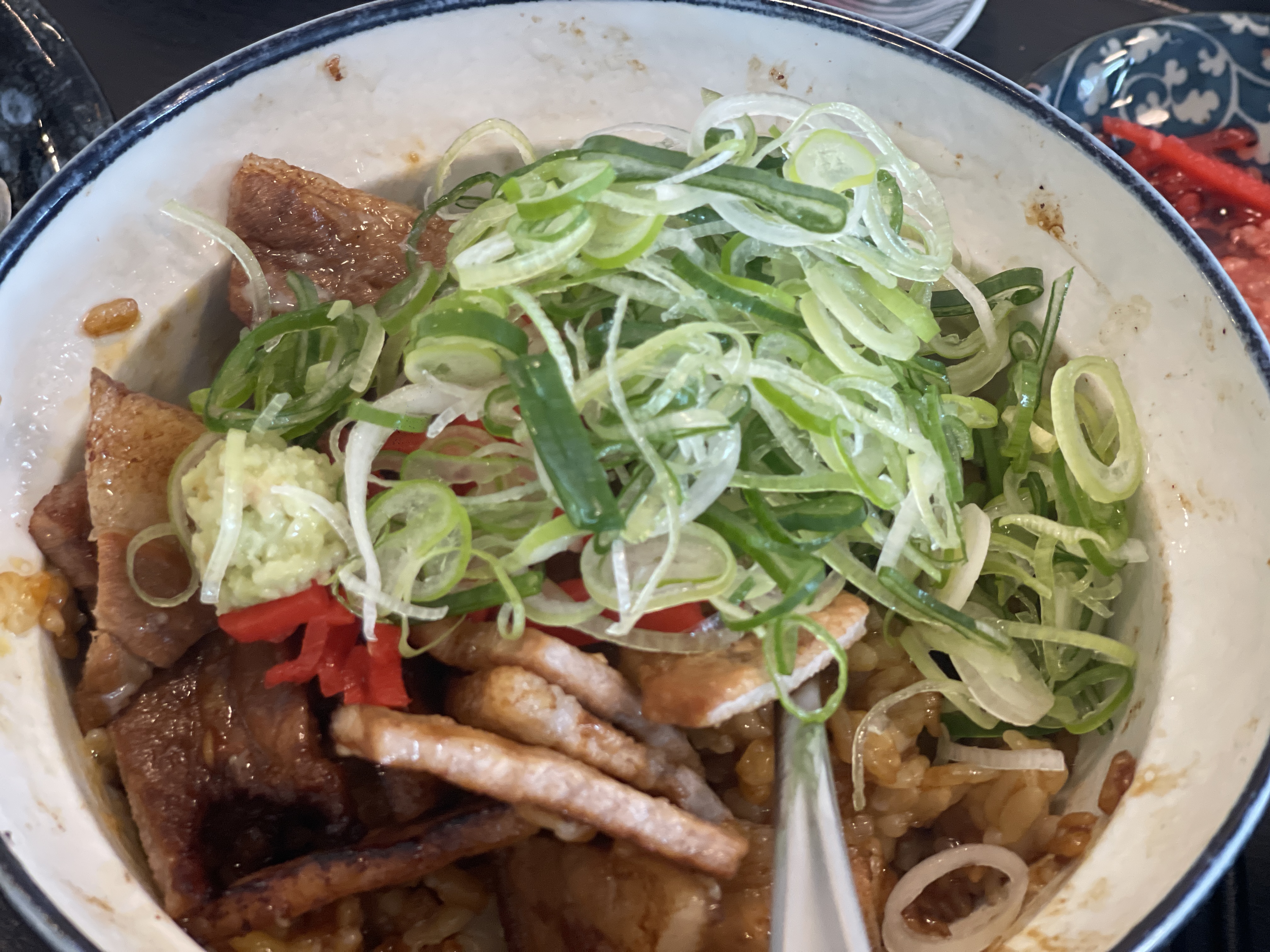 라온이가 남긴 밥에 고기와 초생강, 생고추냉이를 투하하고 파채를 추가해달라 요청한 뒤에 마구마구 비볐다. 비비지 말고 따로먹는게 맛있다는 팁이 있었지만, 이노가시라 아저씨가 맛있게 먹던 한장면이 떠오르면서 자연스럽게 이렇게 하고 싶어졌다. 결과는? 대성공! 자칫 느끼해져버릴 수 있는 입안에 신선한 파향과 초생강, 그리고 생고추냉이의 매콤함이 교차로 드나들면서 훨씬 더 맛있어진다. 깔끔함을 원하는 사람은 고기와 밥을 따로 먹는 것이 좋고, 나처럼 이렇게 먹고 싶은 사람은 한번 도전해봐도 좋을 것 같다.