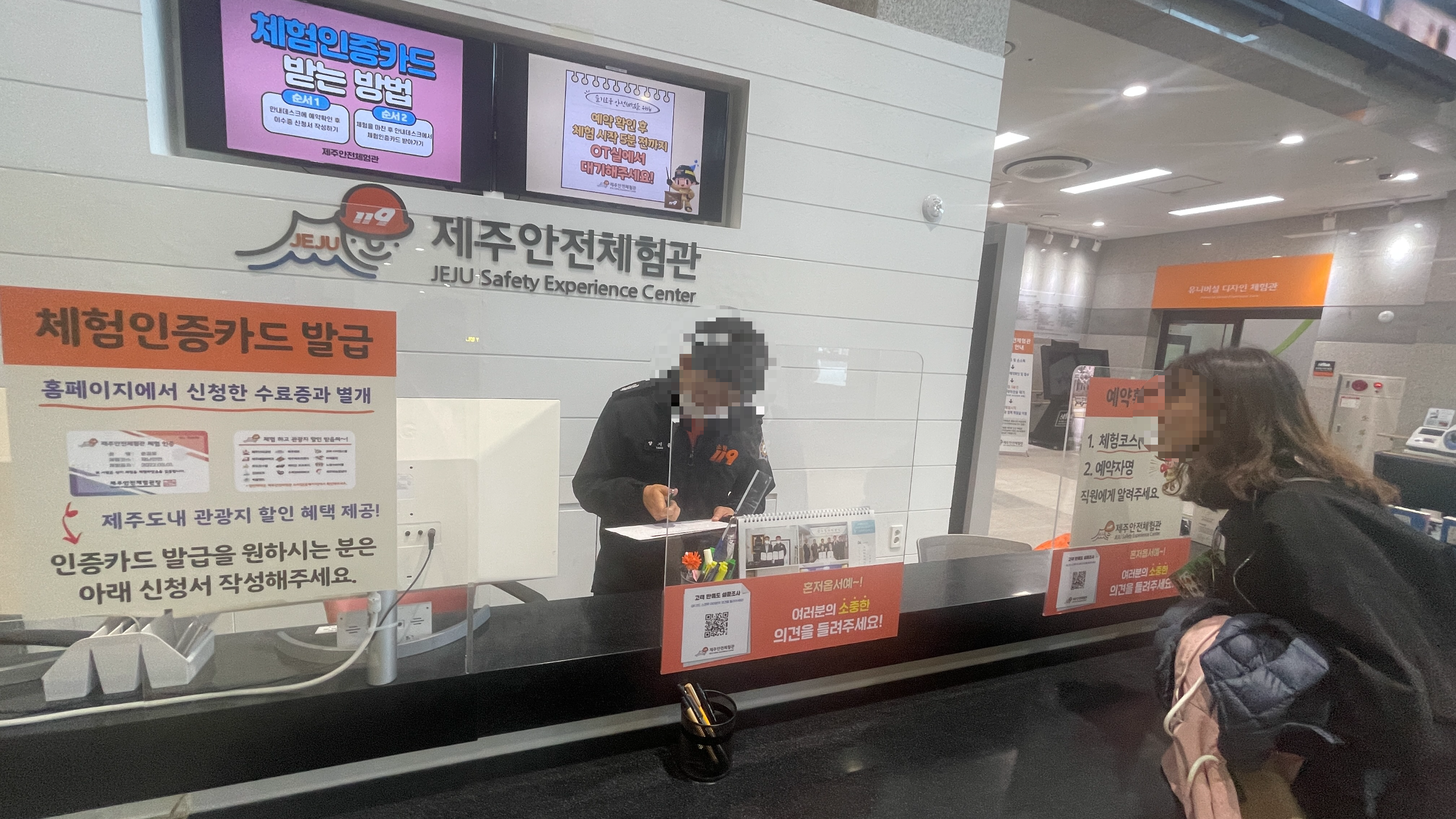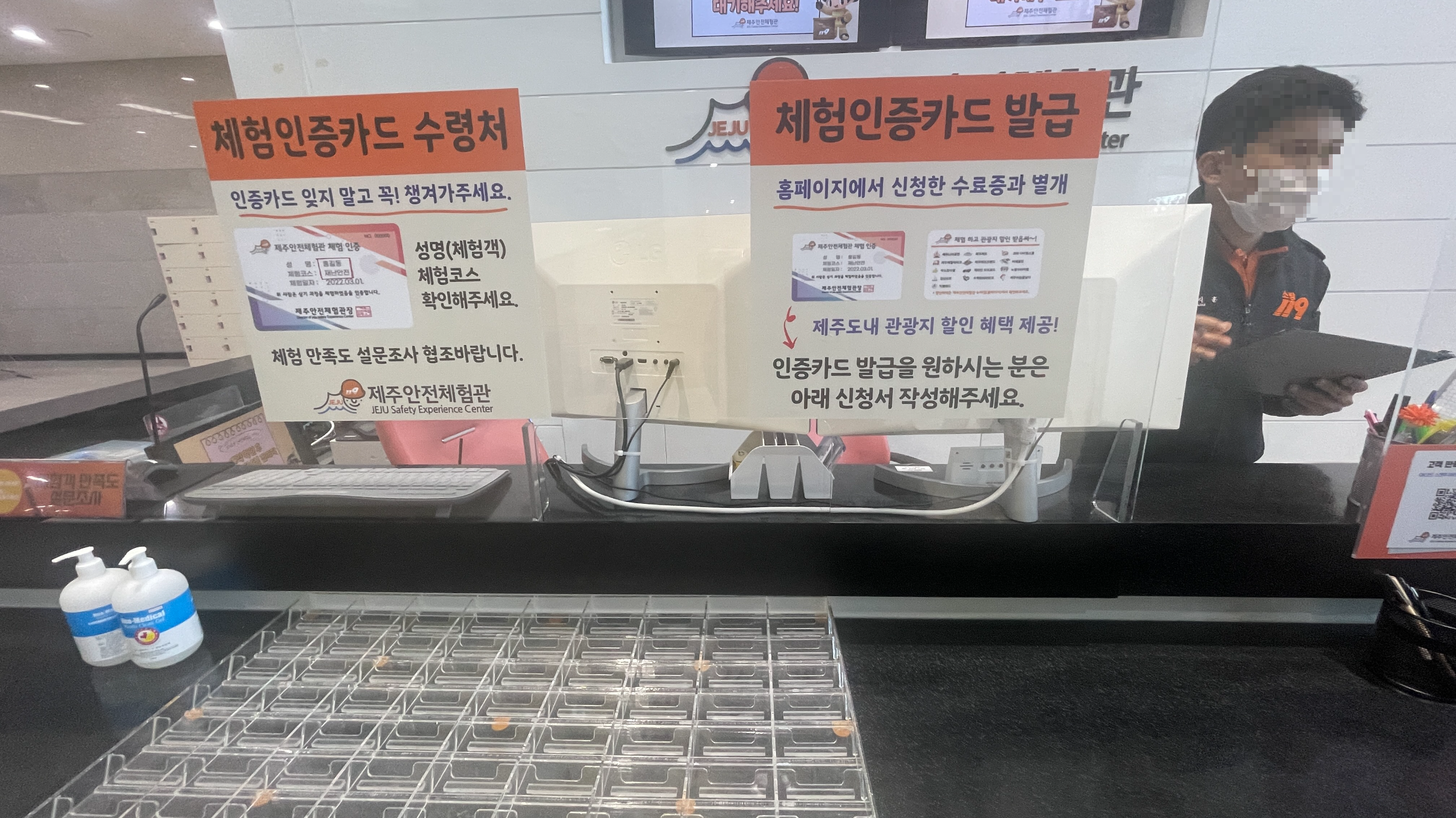 우측엔 안내데스크가 있으며, 여기에서 사전예약한대로 접수하면 된다. 체험종료 후 체험인증카드나 수료증을 발급받을 수 있는데, 체험인증카드는 현재 발급중단되고 있다고 한다. 수료증은 인터넷에서 추후 수령가능하다고 한다.(포스팅 하단에 수료증 참고)