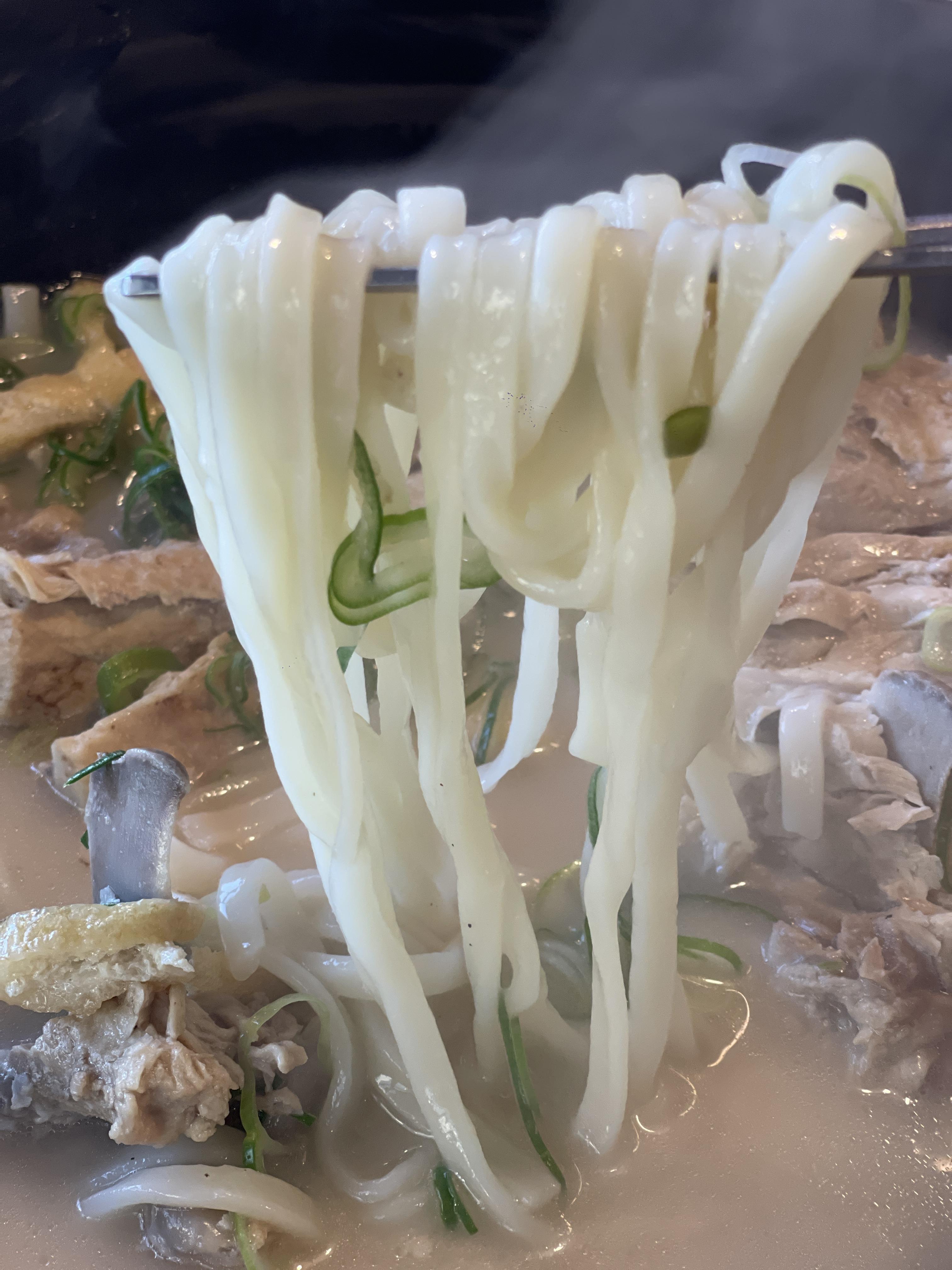 어설프게 만들었다면 고기가 단단하거나 푸석하거나 누린내가 나거나할텐데, 꽃길국수의 등뼈고기.. 진심이 담긴 듯 하다. 무늬만 뼈다귀해장국 맛집인 어설픈 가게의 뼈다귀보다도 훨씬 부드럽다. 조리법에 엄청 신경을 많이 썼다는 느낌이 든다. 질기거나 딱딱한 고기 싫어하는 와이프도 좋아할만한 식감.