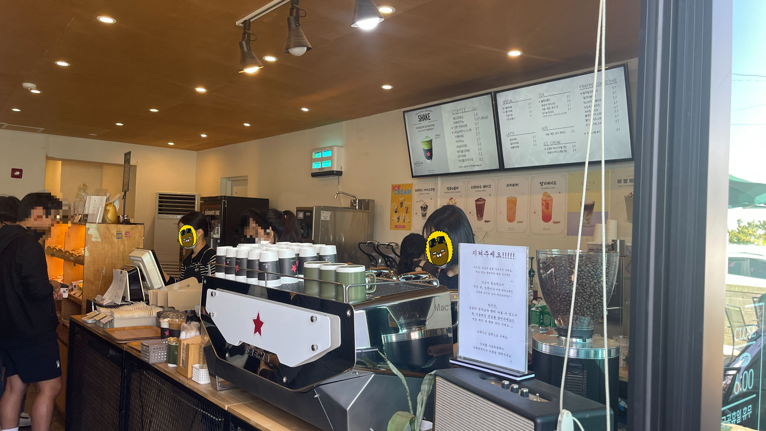여기를 처음 소개시켜준 직장동료가 그랬다. "주문하고 카드를 건네준 뒤 결제 후 영수증을 받아들면 바로 음료가 나와요" 조금 과장된 것처럼 들리는 이 말이 실제로 가게에선 빈번하게 일어난다. 그것도 점심시간 가장 바쁜 시간에 말이다.