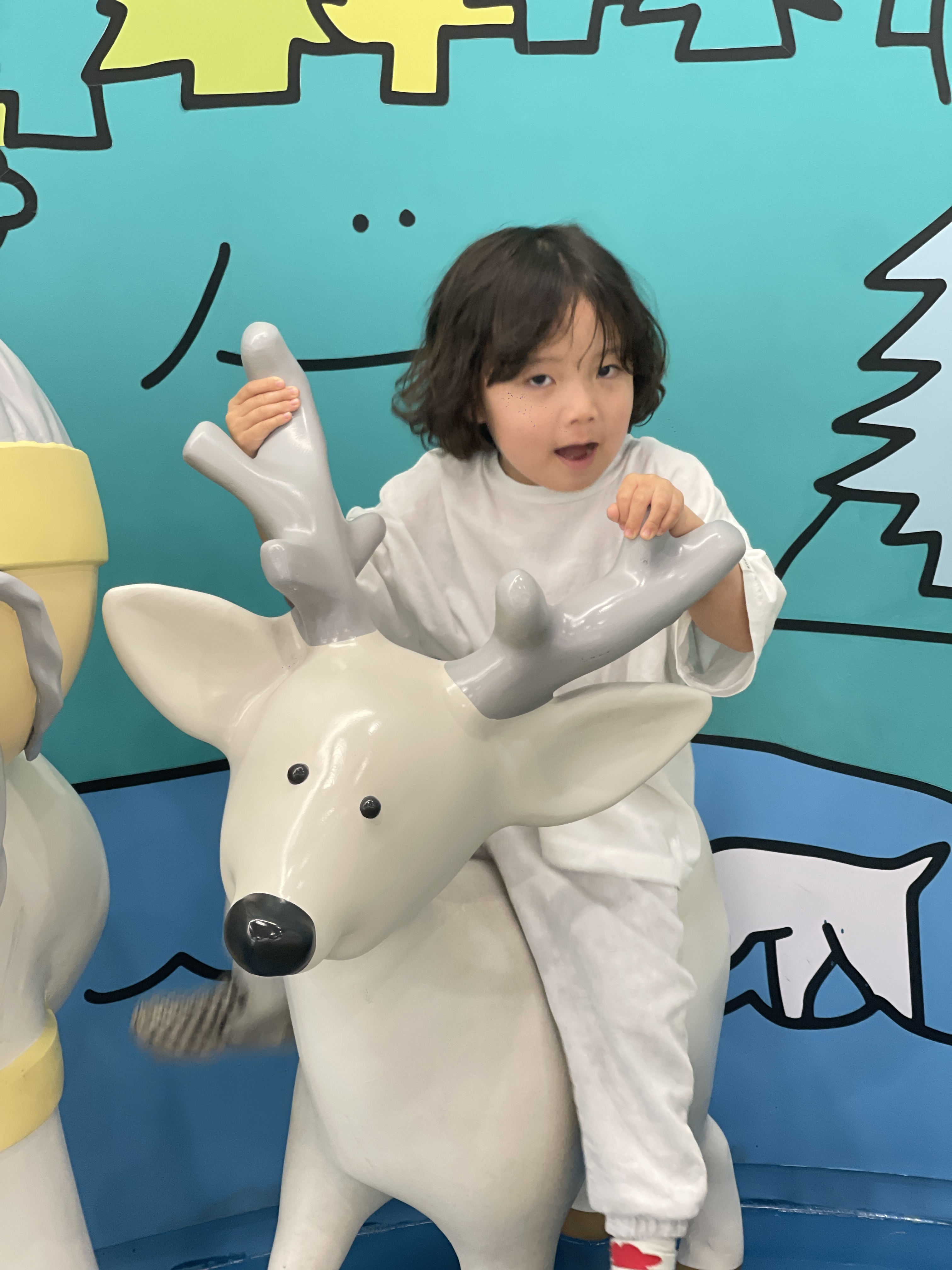 오랜만에 어린이박물관에 들어왔는데, 백록 위에 올라타 인증샷도 찍어 본다. 아기아기 할때 왔었는데.. 제법 컸다..