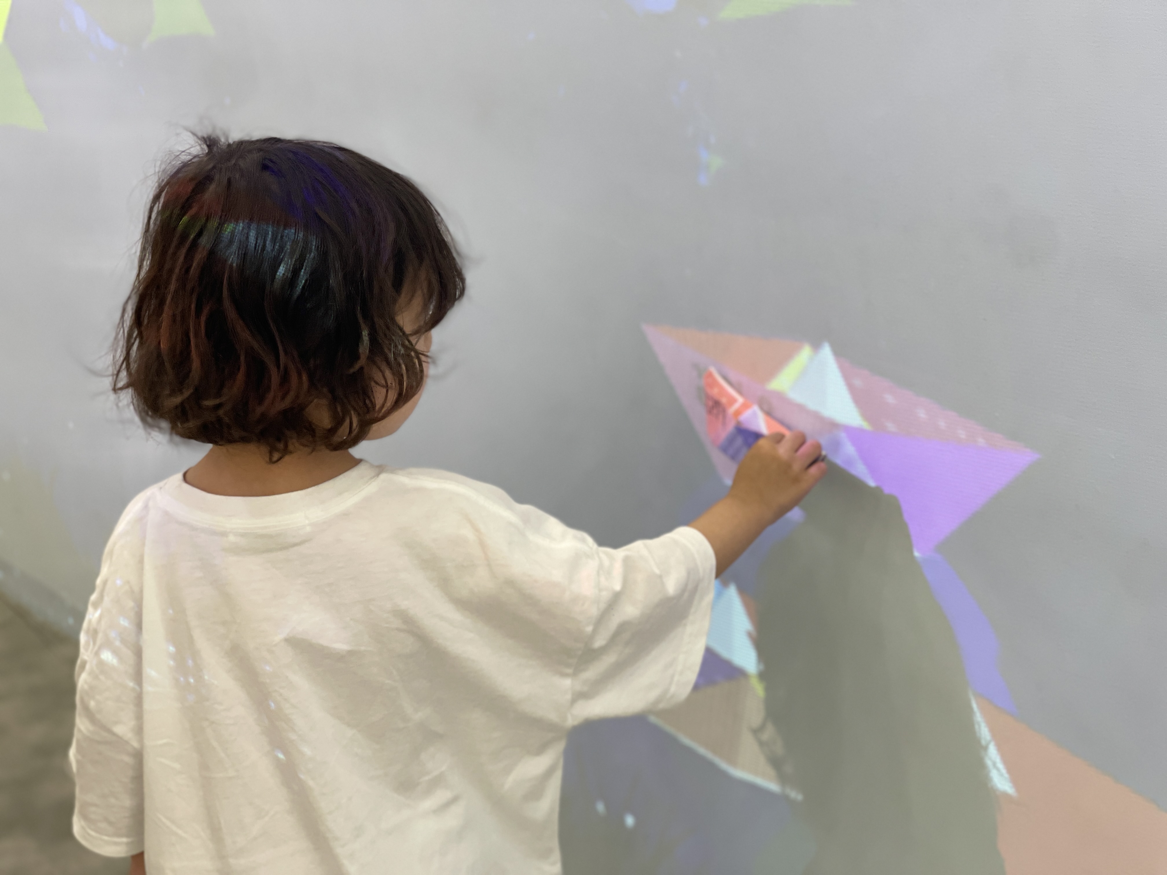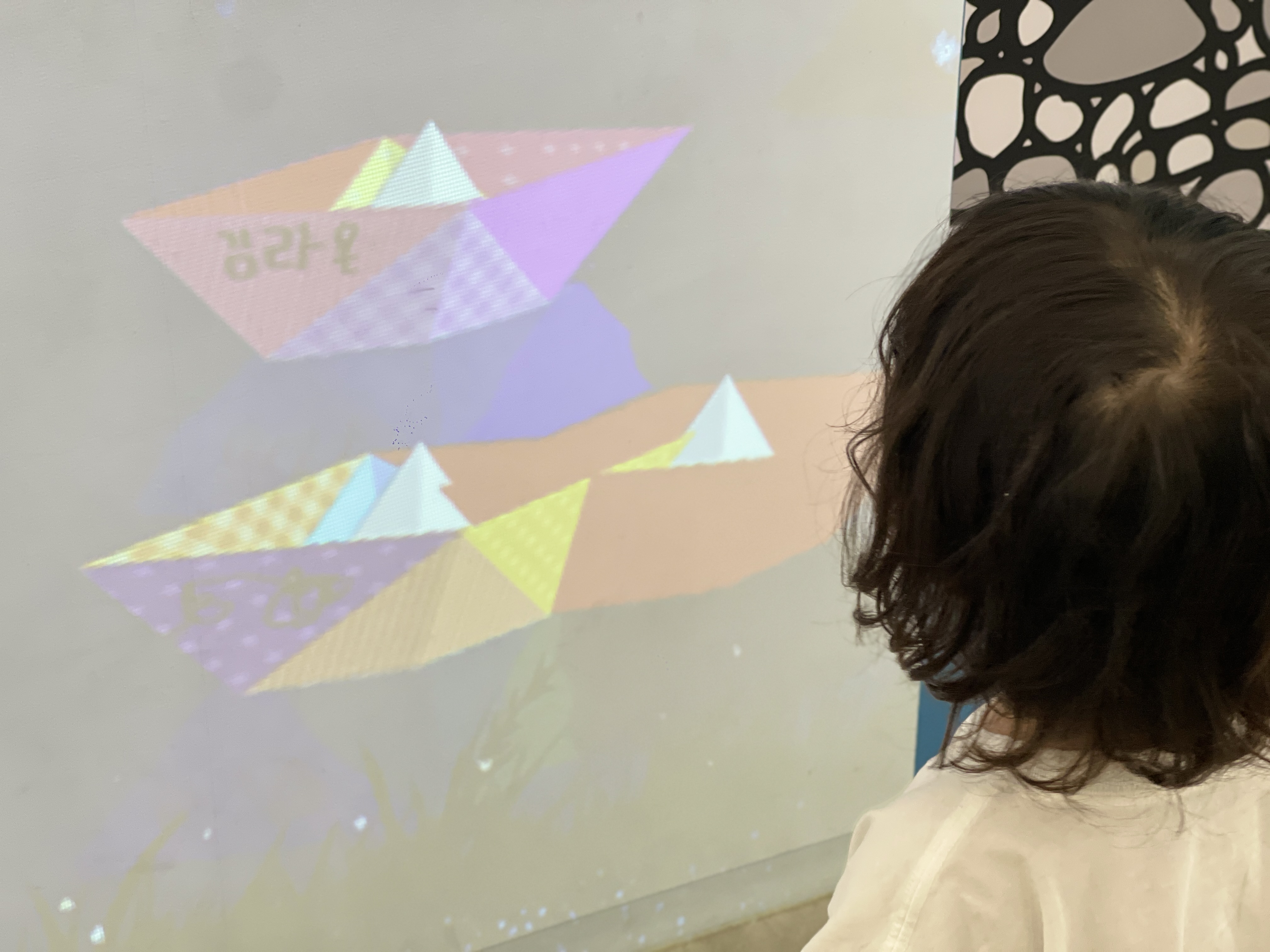 디지털로 변환시켜 벽을 타고 흘러가는 종이배를 보며, 자기가 만든 종이배와 같이 둥둥 떠내려보내기도 해본다.