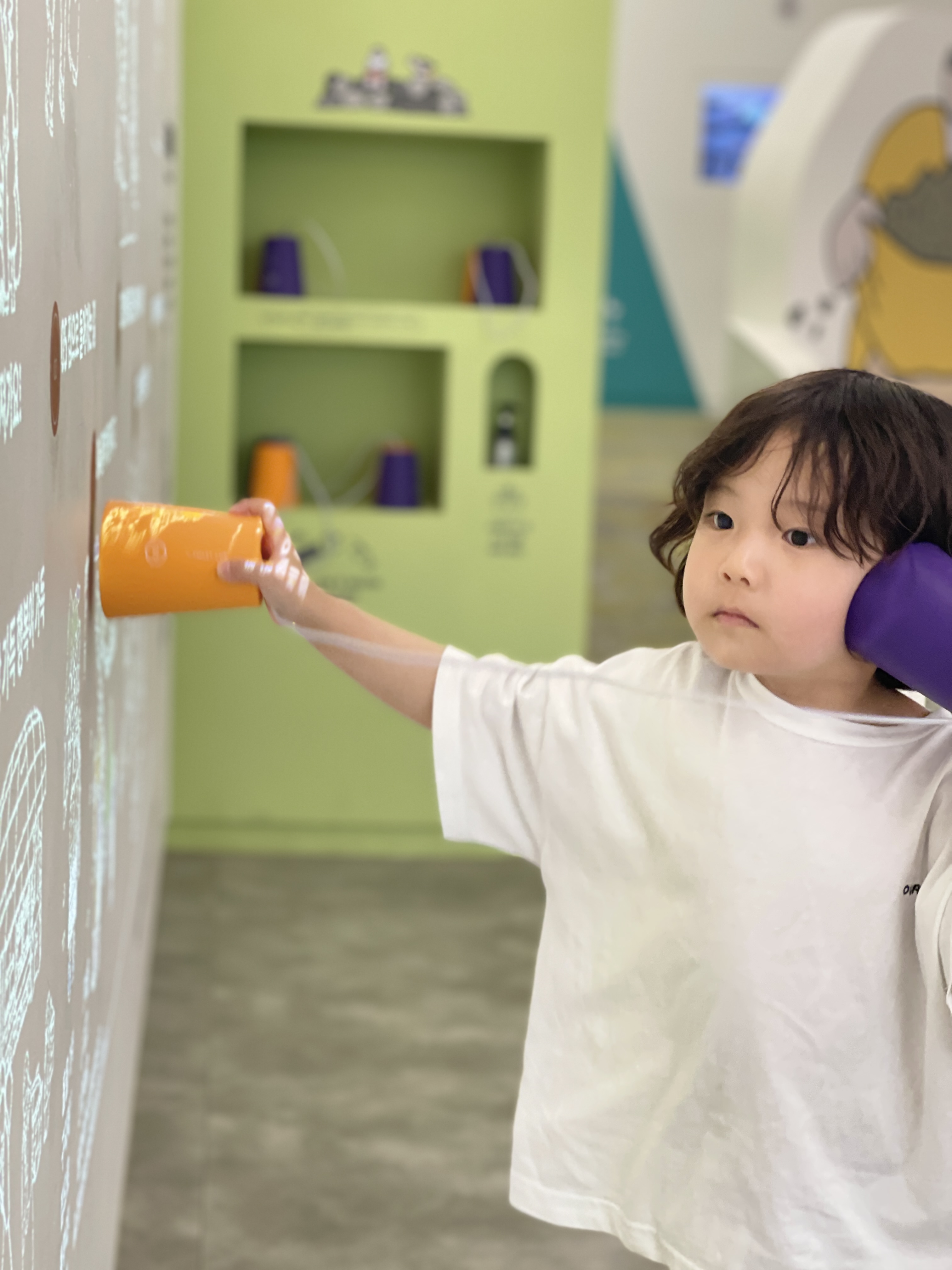 제주 곳곳의 명소에 대한 안내도 신박한 종이컵전화기 장비를 이용해서 곧잘 듣는 녀석.