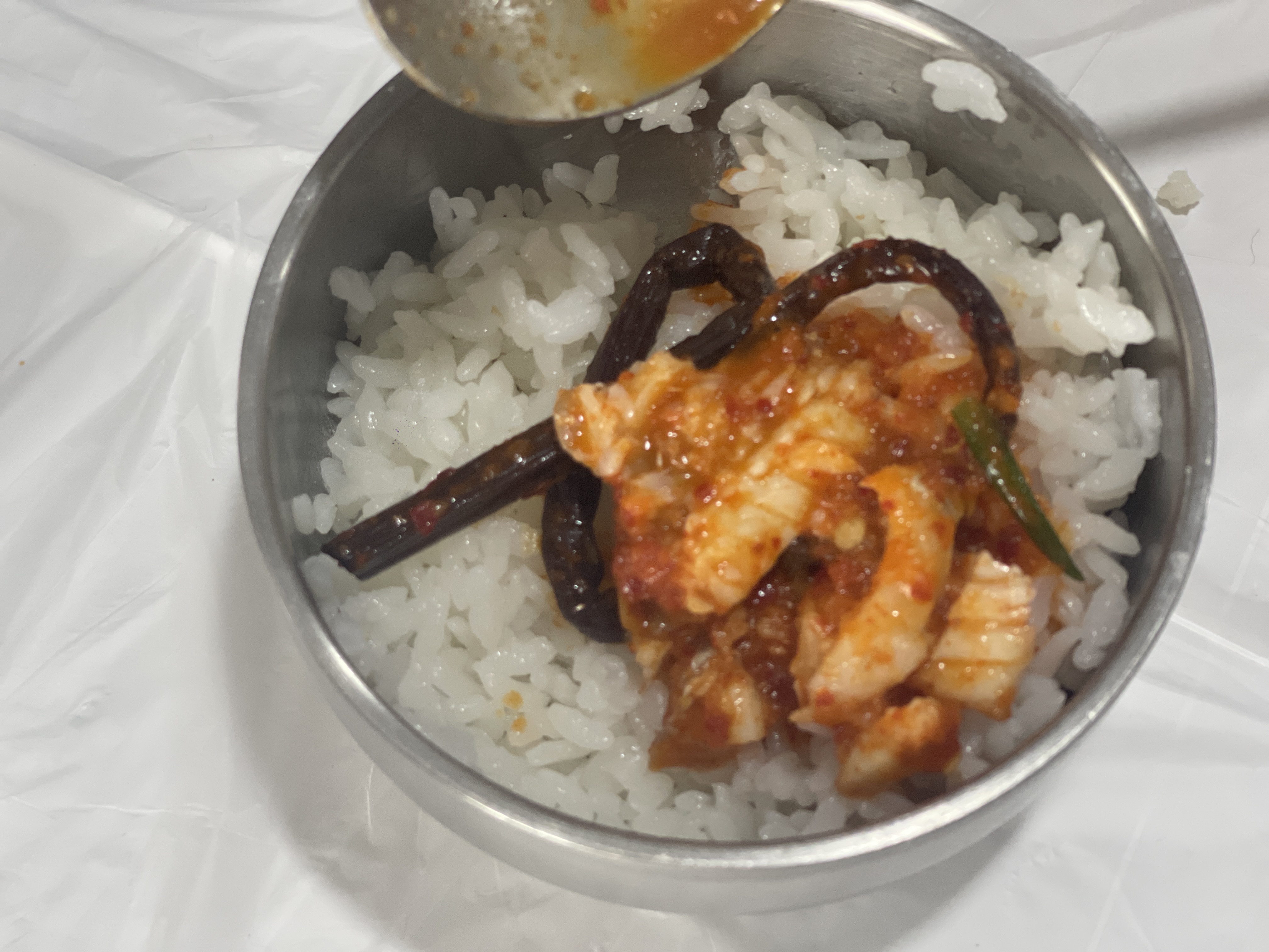 흰쌀밥 위에 발라 낸 살을 듬뿍 올려서 먹어도 좋다. 그리고 이 집 공기밥.. 좋은 쌀을 쓰는 것 같다. 공기밥별도라는 표현을 참 좋아하지 않는데, 이정도 질의 쌀을 쓴다면 제값을 받아야 한다는 생각이 든다. 고시히카리 쌀밥과 비슷한 느낌인데.. 밥맛이 좋으니 갈치구이가 더 맛있게 느껴진다.