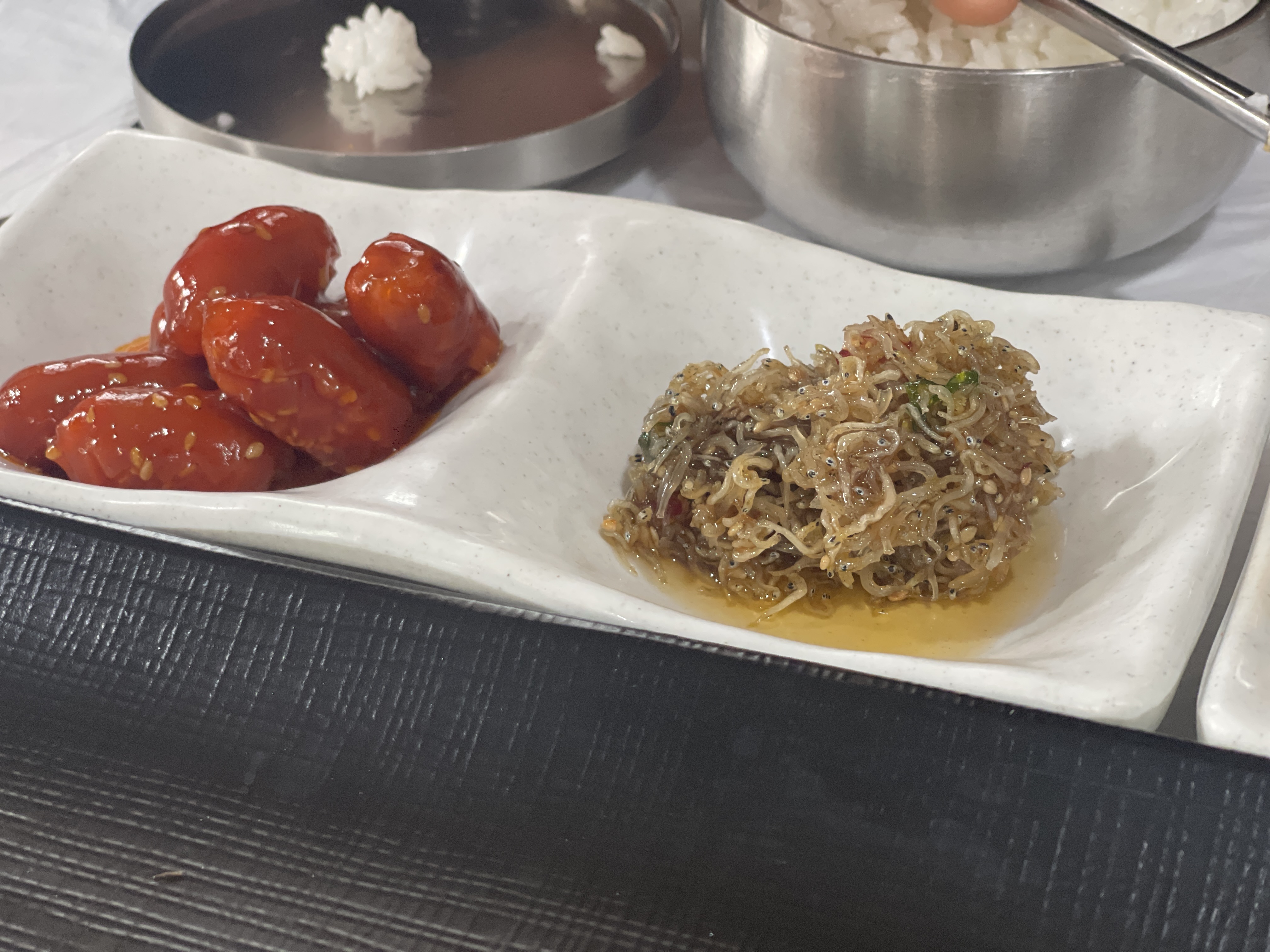 완전 맛있다기보다는 무난한 맛이다. 메인메뉴가 워낙에 거창하니 밑반찬이 특별나게 더 맛있을 필요는 없다. 구이와 조림에 적당히 보조하는 수준 정도다. 산고추무침은 조금 특별한 느낌으로 다가와 좋았다. 집에서 한번 해먹어 봐도 좋을 듯.
