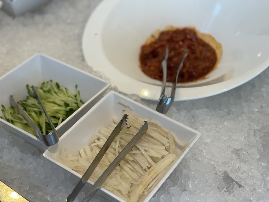 호텔뷔페를 감안하면 약간 아쉬운 구성이지만, 가격을 고려했을 때 적당한 가짓수로 보인다. 꽃빵과 고추잡채의 조합은