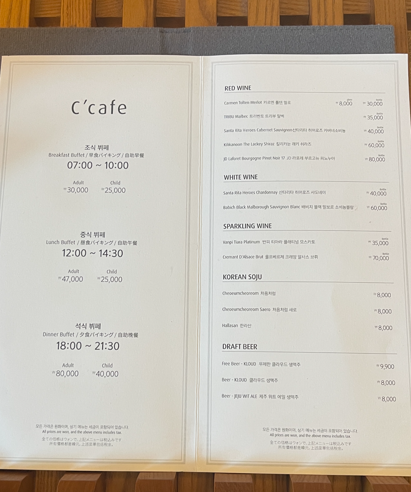 (조식) 07:00 ~ 10:00 성인 30,000원 / 어린이 25,000원