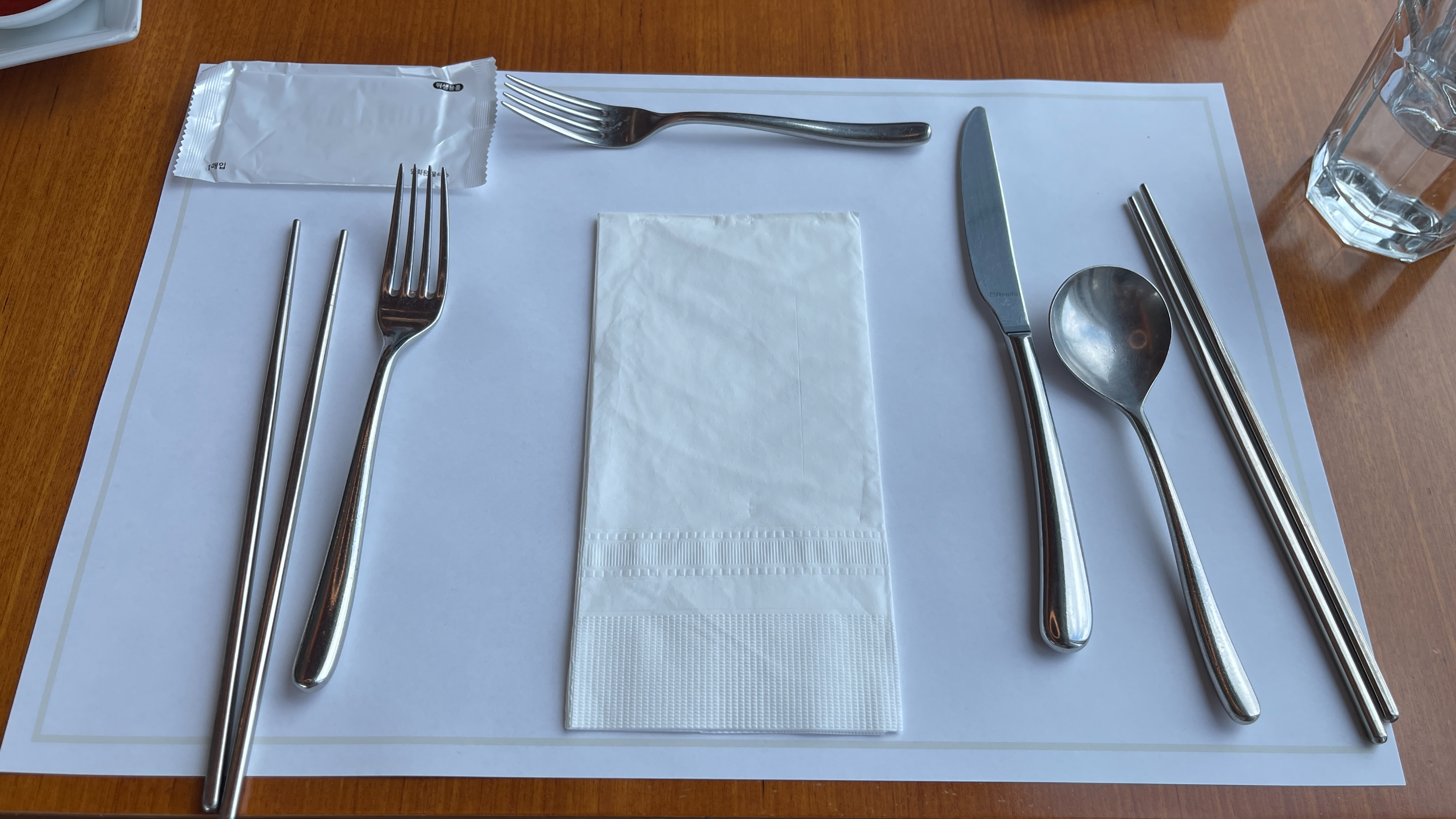 기본세팅되어 있는 수저세트 확인도 하지 않고 음식사진 찍다가 젓가락을 챙겨왔더니, 이미 자리에도 젓가락이 세팅되어 있다. ㅡㅡ;
