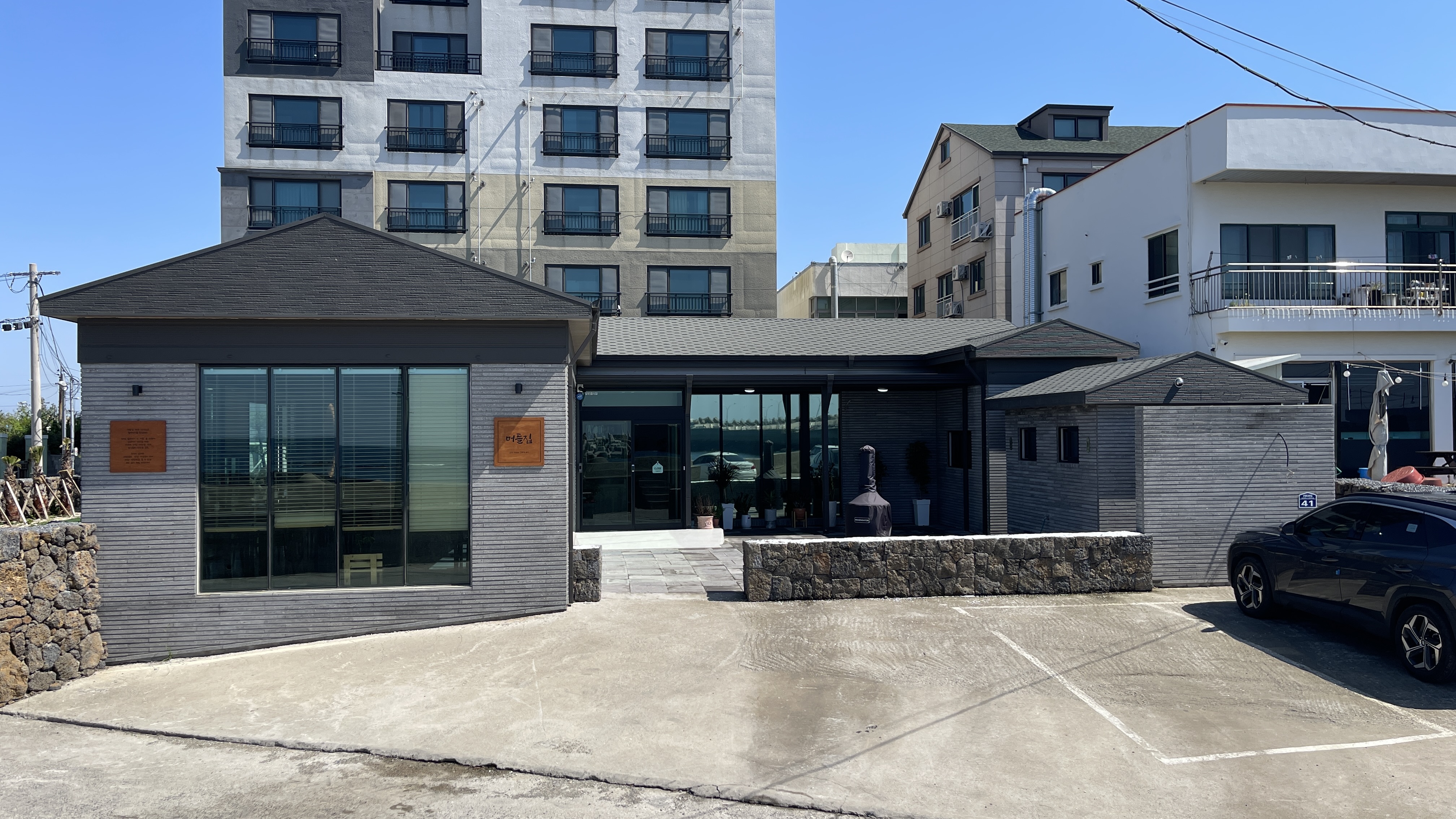 오늘가려고 했던 모슬포맛집 머들집. 와이프가 좋아하는 청국장과 제육볶음이 한상차림으로 나오는 청국장맛집이다. 건물외관은 청국장맛집이 맞나 싶을 정도로.. 카페외관의 느낌이다.