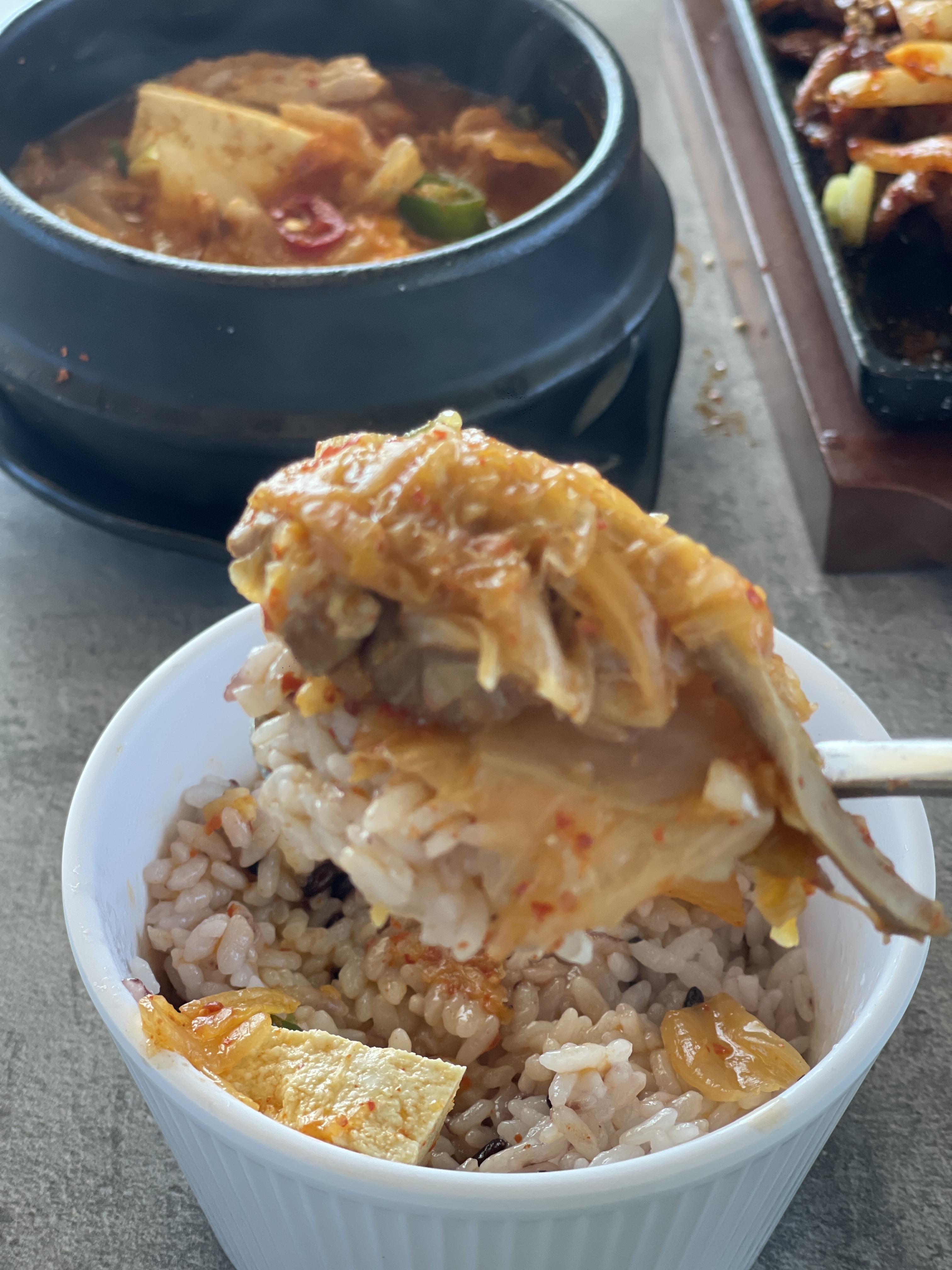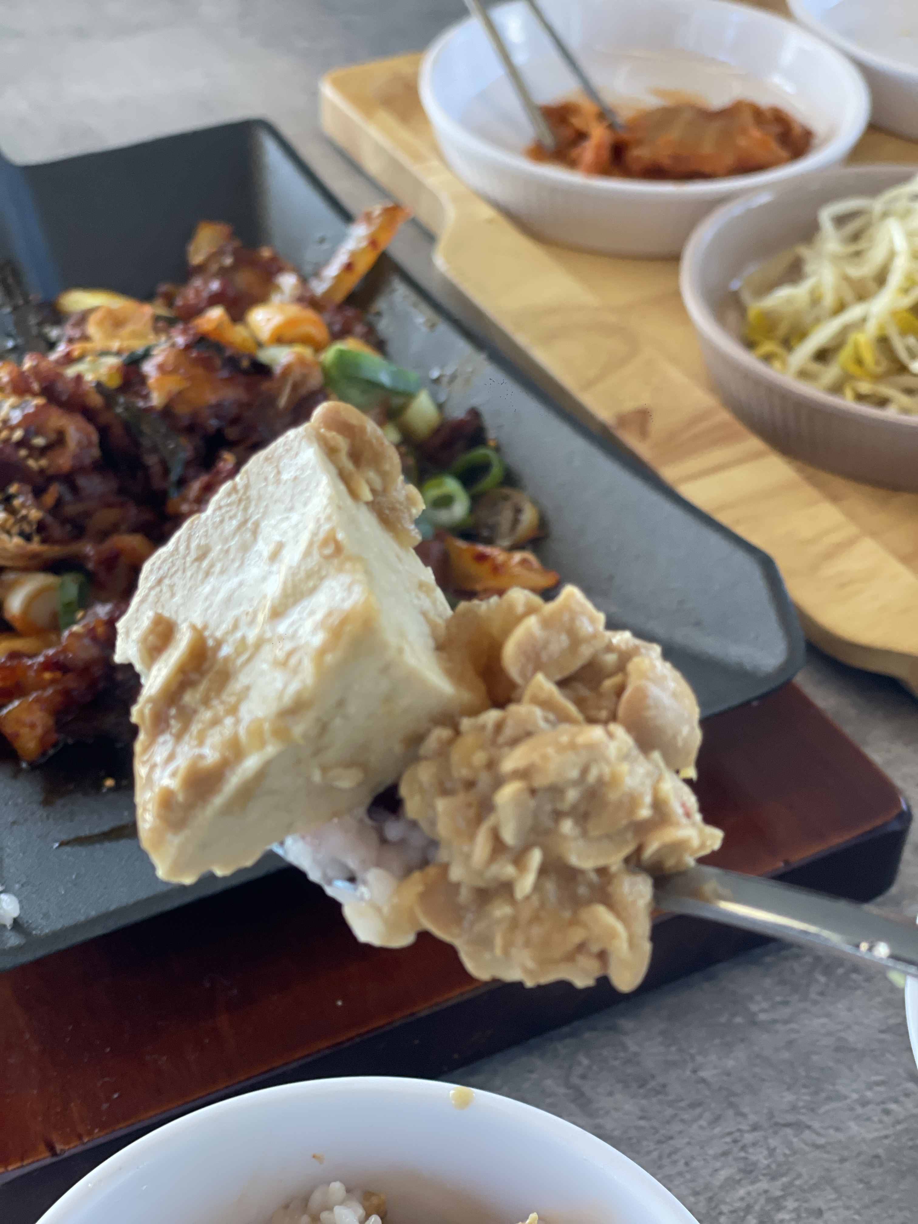 "나 청국장 좋아하냐?"라고 묻고 싶을만큼 밥 위에 올려먹는 청국장도 정말 맛있다. 고소한 두부와 구수한 청국장의 조화가 공기밥을 순식간에 비우게 만든다.