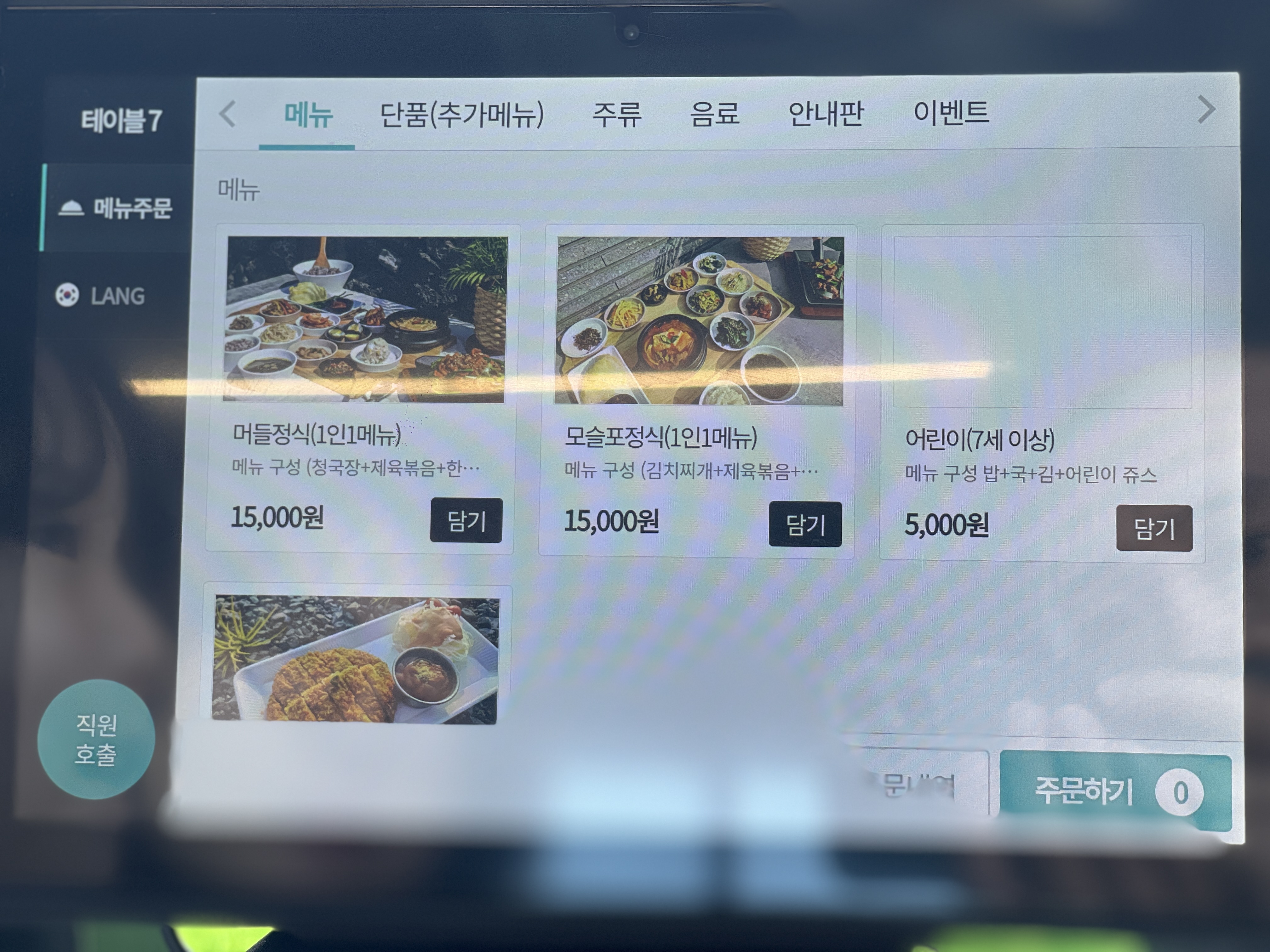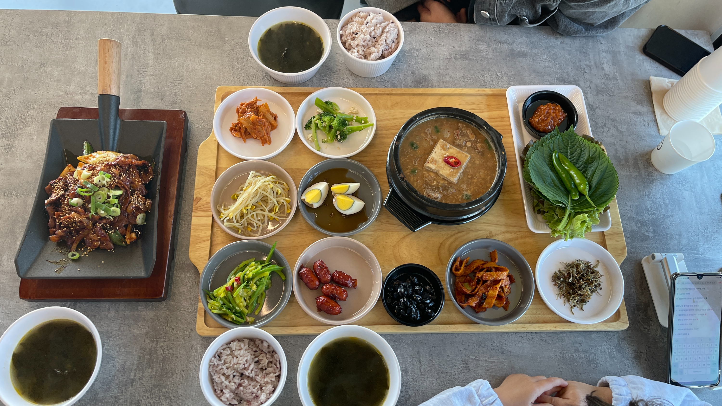 일단 청국장 매니아인 와이프를 위해 머들정식 2인으로 주문! 라온이는 4살이라 1인 1메뉴에 포함되지 않고 밥은 따로 나온다고 한다.