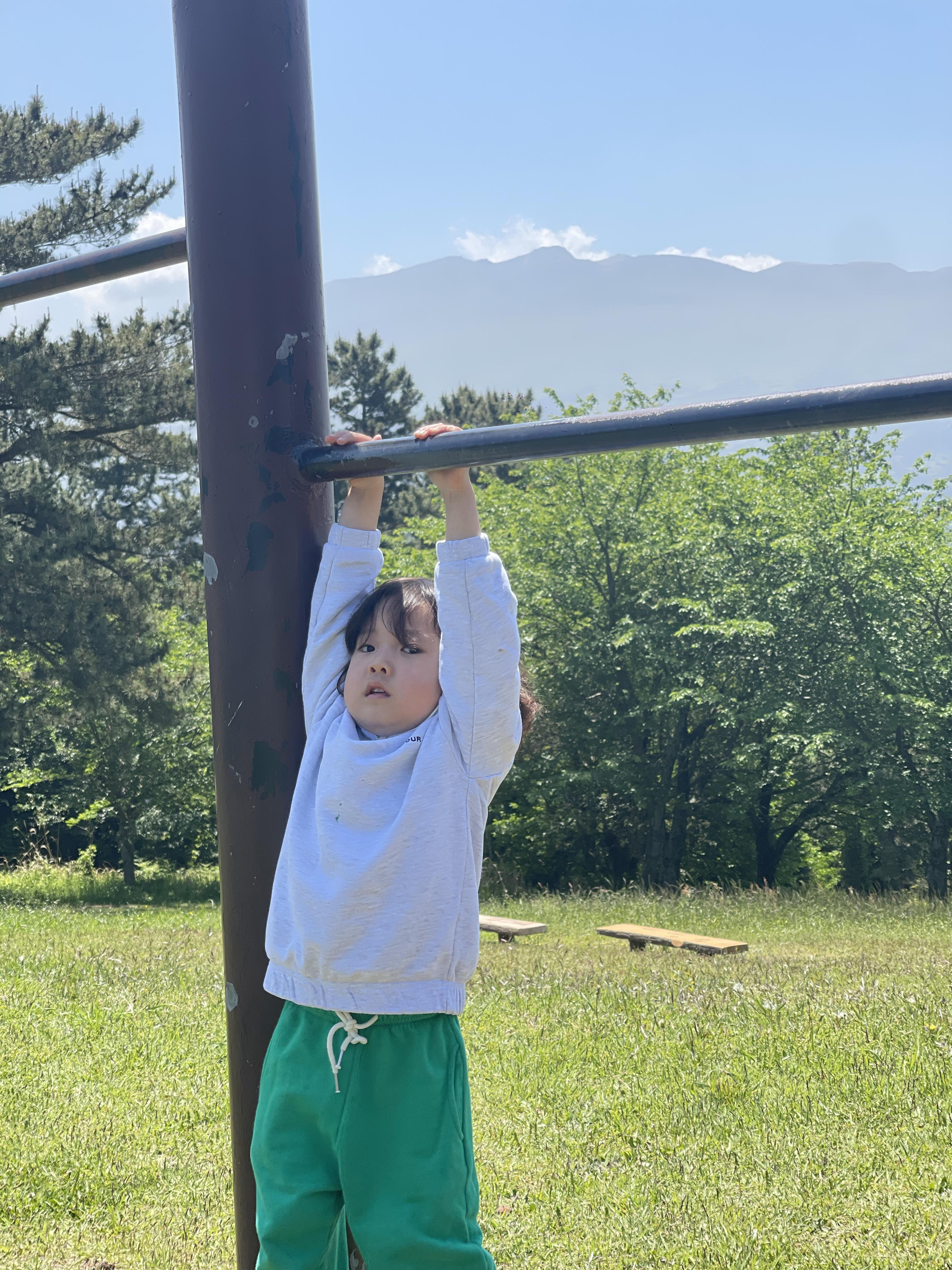 오르는 동안 아빠 품에 안겨 체력을 많이 소진하지 않았던 녀석은 잠시 쉬더니 놀이하러 다니기 바쁘다. 턱걸이에 매달리기도 해보는데 아기아기할 때는 잡지도 못하던 녀석이 이젠 까치발만 들어도 잡을 수 있을 정도가 되었다. 정실마을에 사는 동안 참 많이도 컸다.